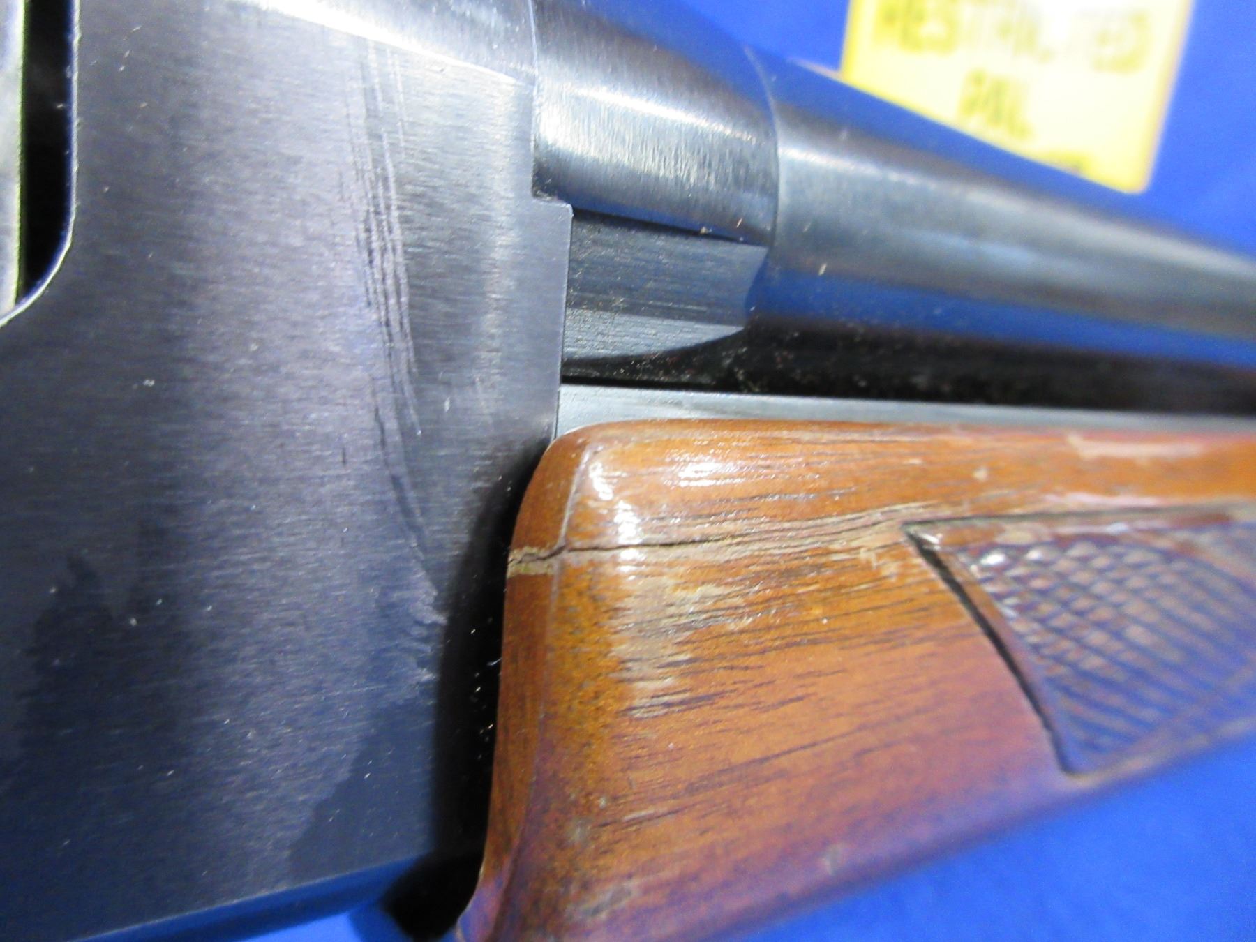 Non-Restricted - Winchester Model 1200 in 12 Ga. 2 3/4" Full - This pump action shotgun appears to be in good to very good working order. Barrel is 30", bore is good to very good, bluing is good with light scratches and light pitting near muzzle, has bead front sight, stock is good with usage marks , forearm has a crack on right side at top, rubber recoil pad. Ser # 438977