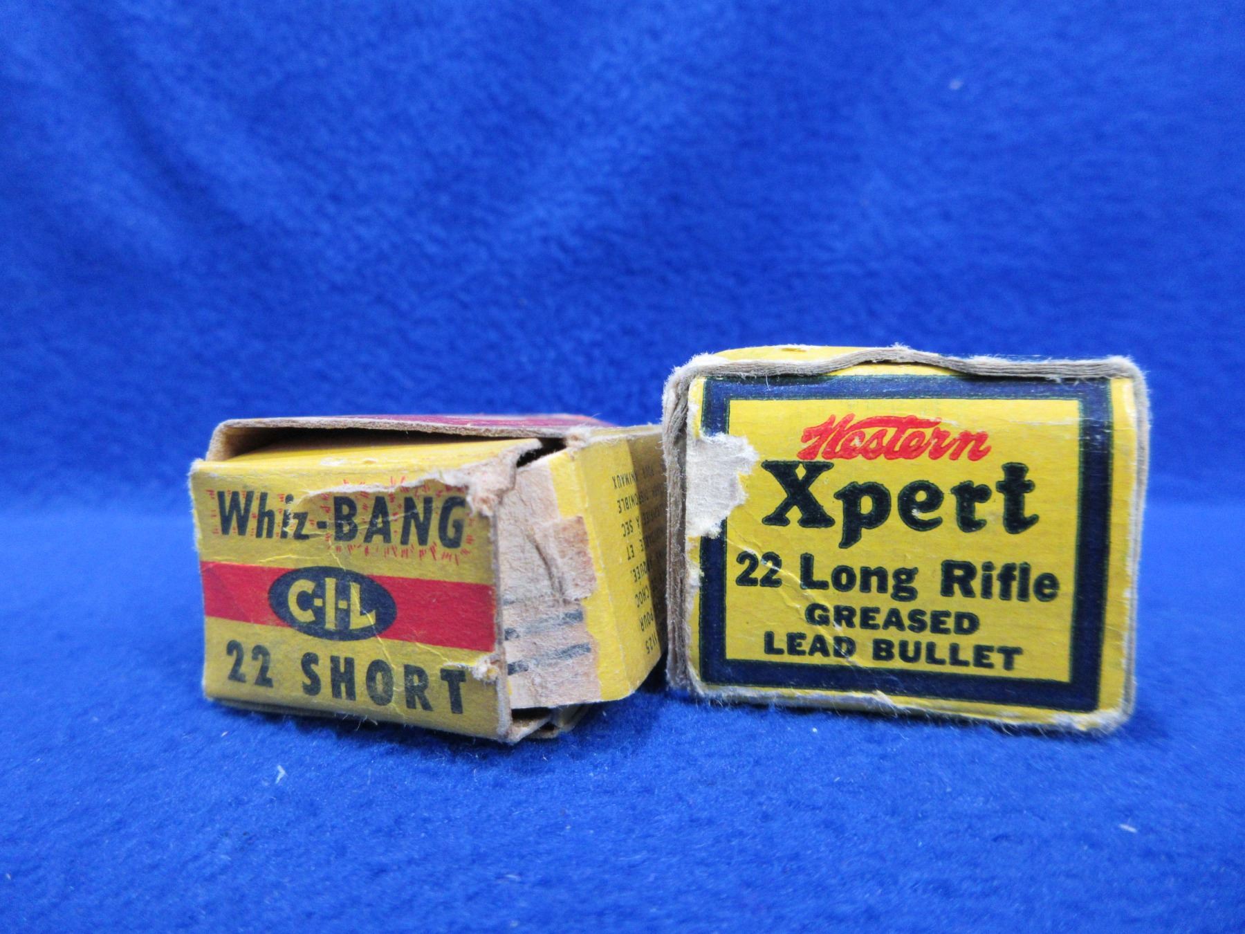 Collector Ammo - 22 Short & 22 LR Cartridges - Box of 50 (22 LR Western), Box of 38 (22 Short Whiz-Bang), Whiz-Bang box has damage - PICK UP ONLY