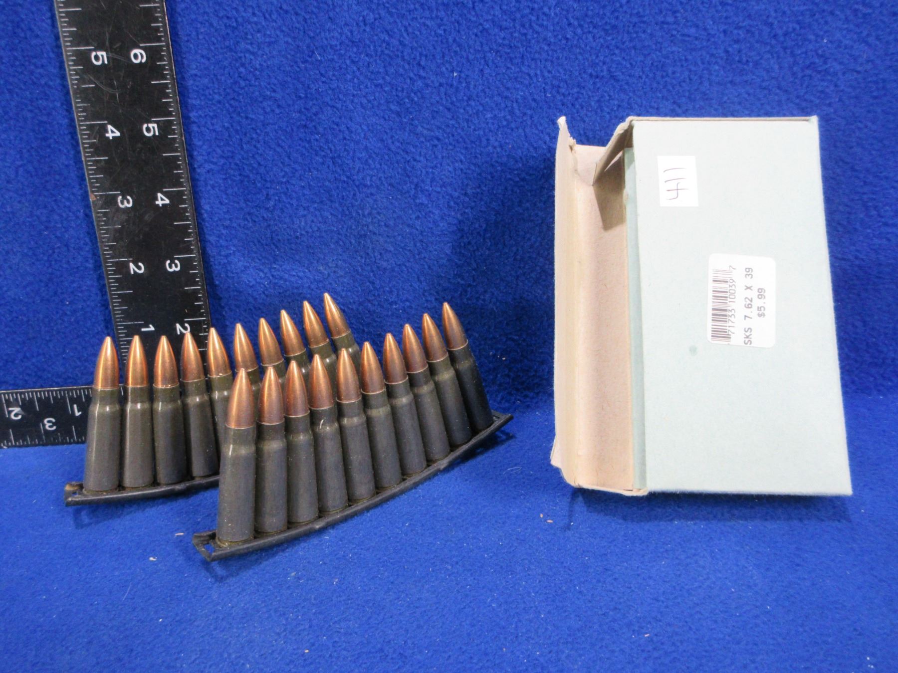 Lot 411 7.62X39 SKS Military Cartridges on Stripper Clips - Box of 20