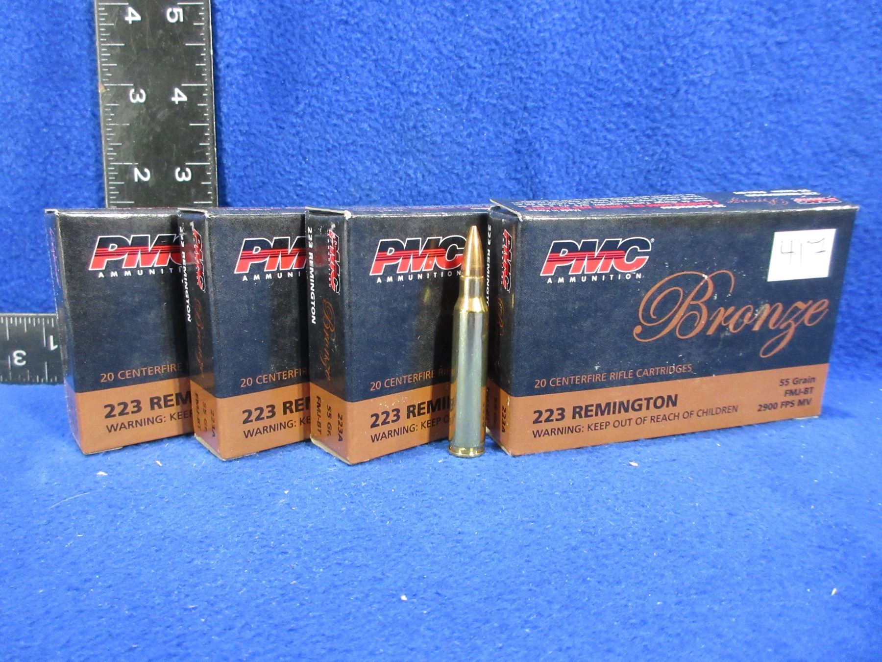 Lot 417 223 Rem. 55gr FMJ BT PMC Bronze Cartridges