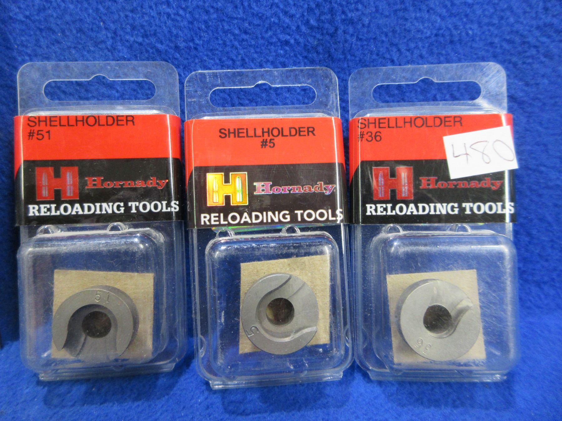 Lot 480 NEW - 3 Hornady Shell Holders - #'s 5, 36 and 51