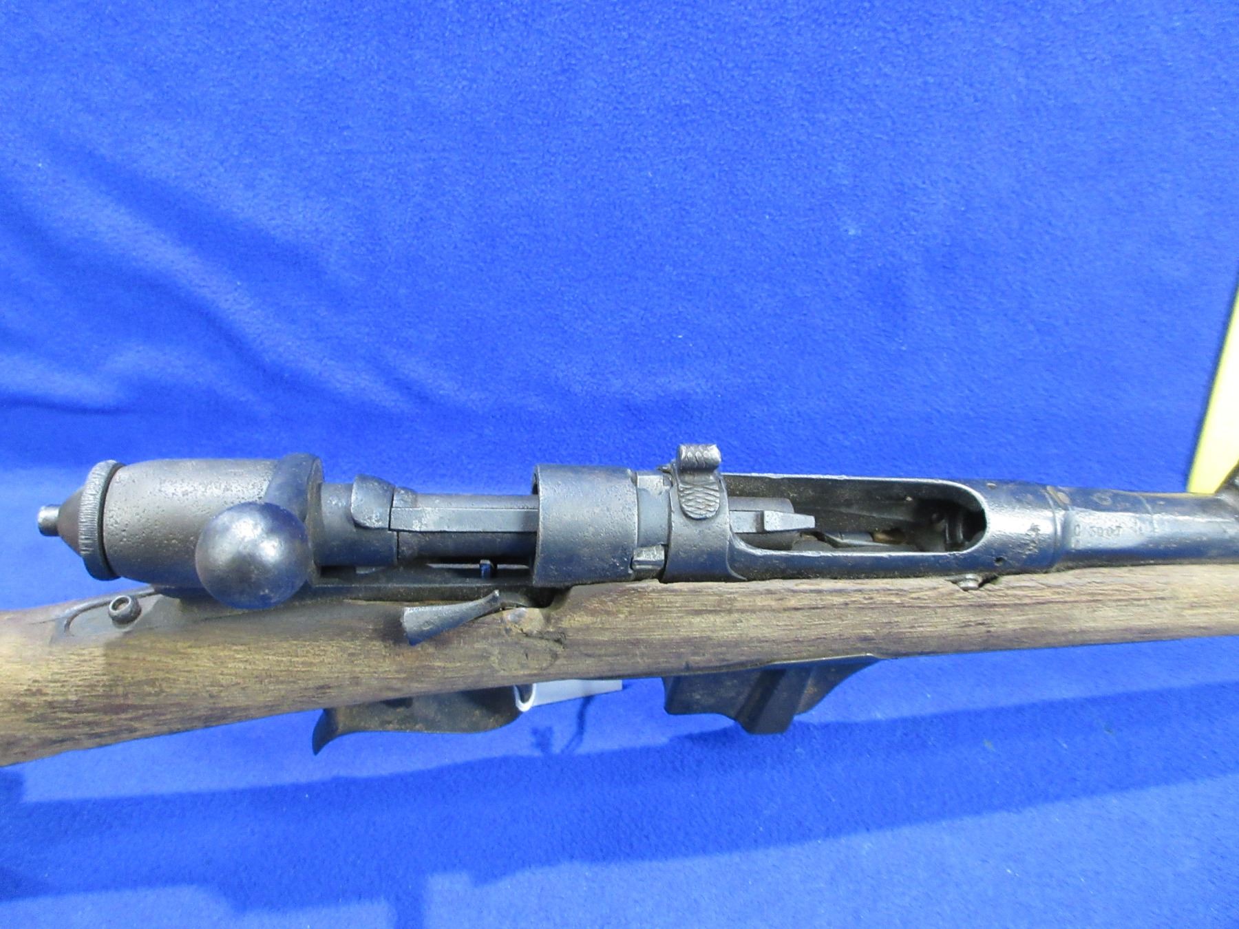 Antique - No PAL required - Italian Torino Vetterli appears to be 10.4mm - Stamped 1873, this bolt action rifle with removable magazine is in non-working order. Barrel is 28 1/2", rifling is poor, bluing is gone with pitting, has both sights, stock is poor (dried and cracked), metal butt plate pitted. Ser # C3007