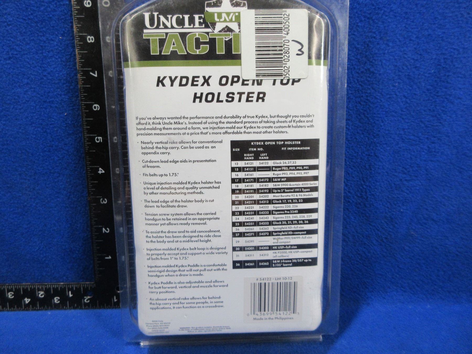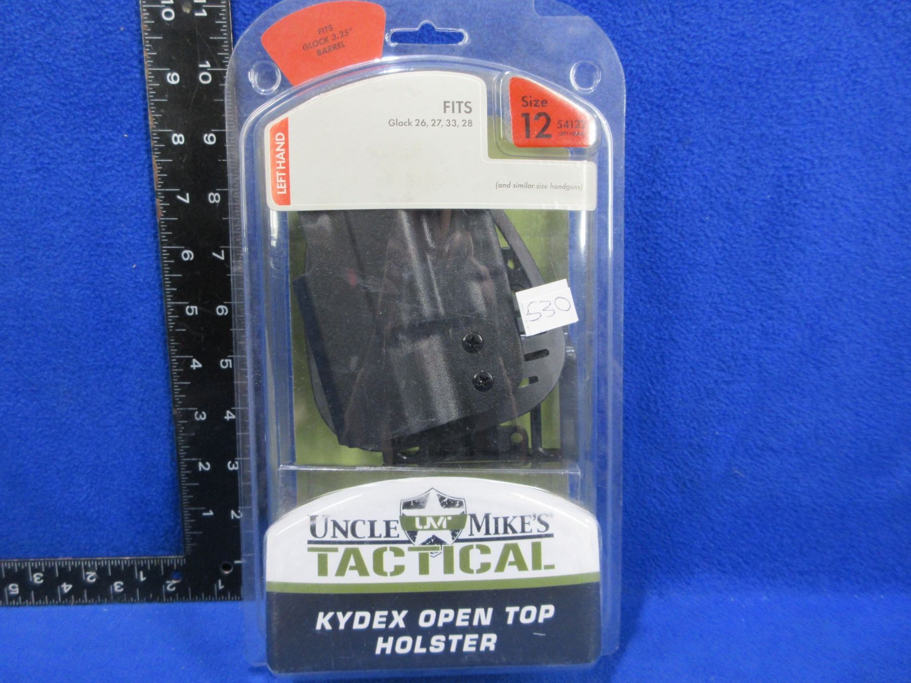 NEW - Uncle Mike's Tactical Kydex Open Top Holster - Fits Glock 26, 27, 33, 28 - Size 12 Left Hand 54122