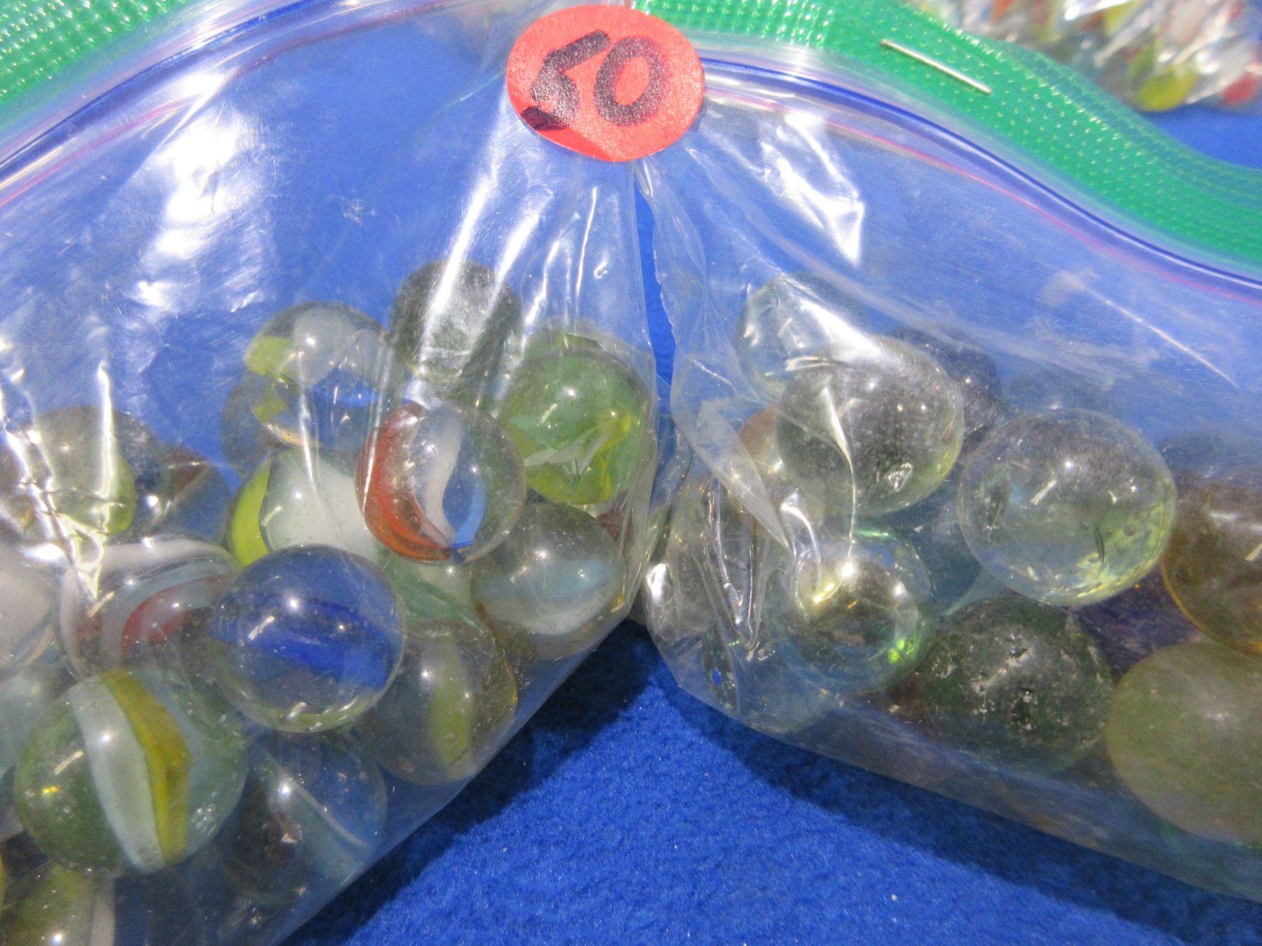 Lot 1048 4 Bags of Glass Marbles - Onion Skin (150), Clear (50)