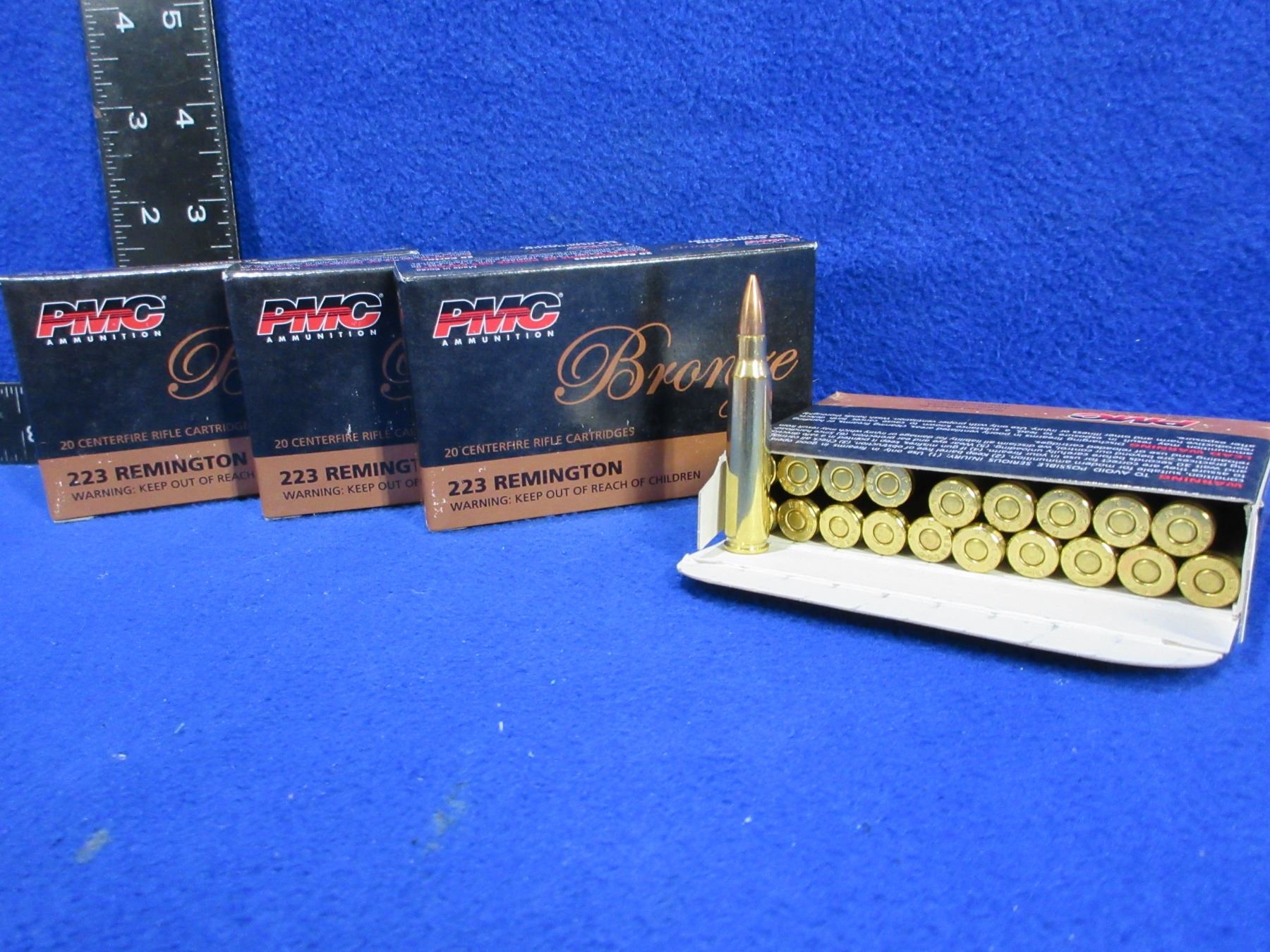 223 Rem. 55gr FMJ BT PMC Bronze Cartridges - 4 Boxes of 20 - PICK UP ONLY