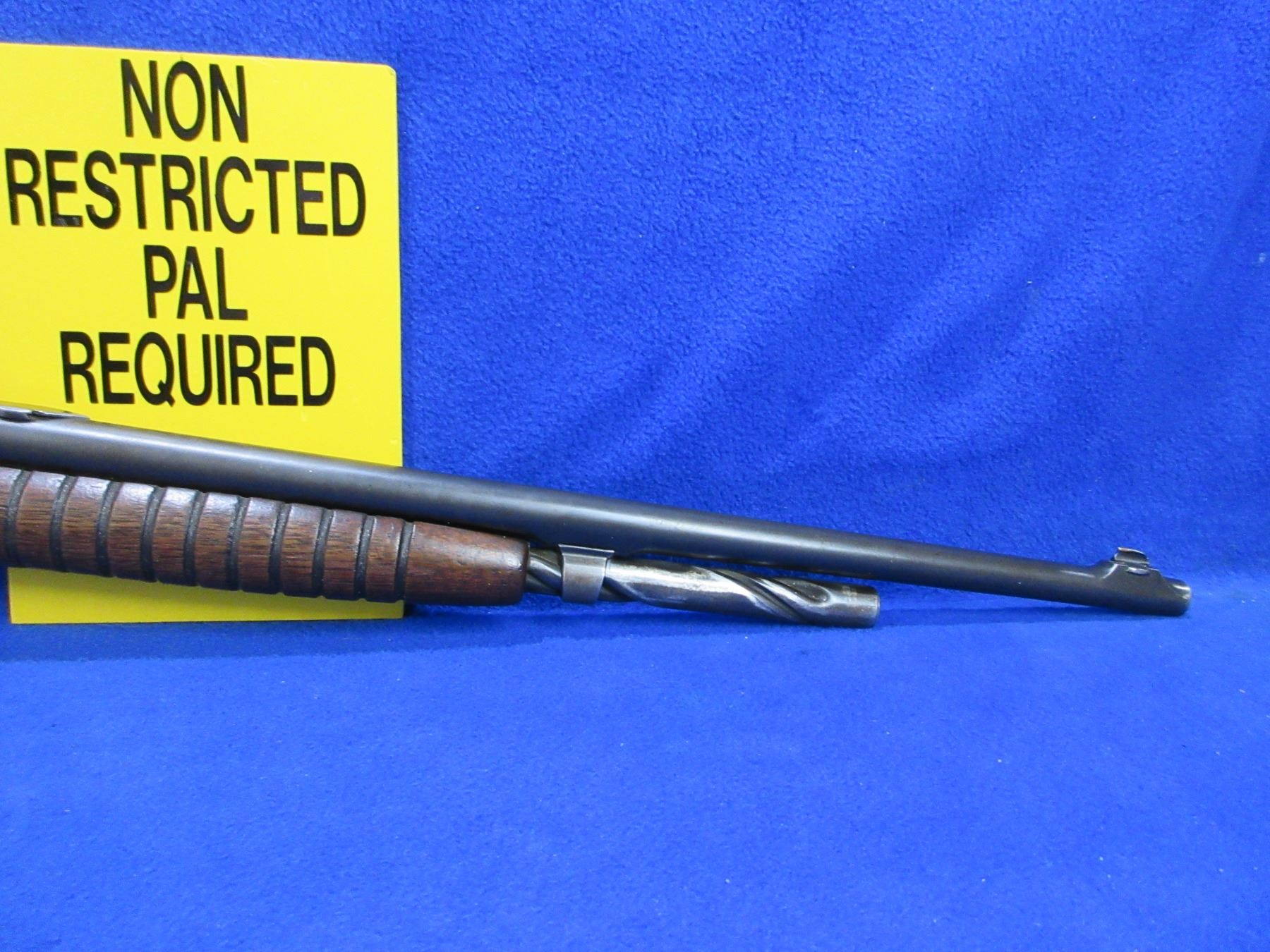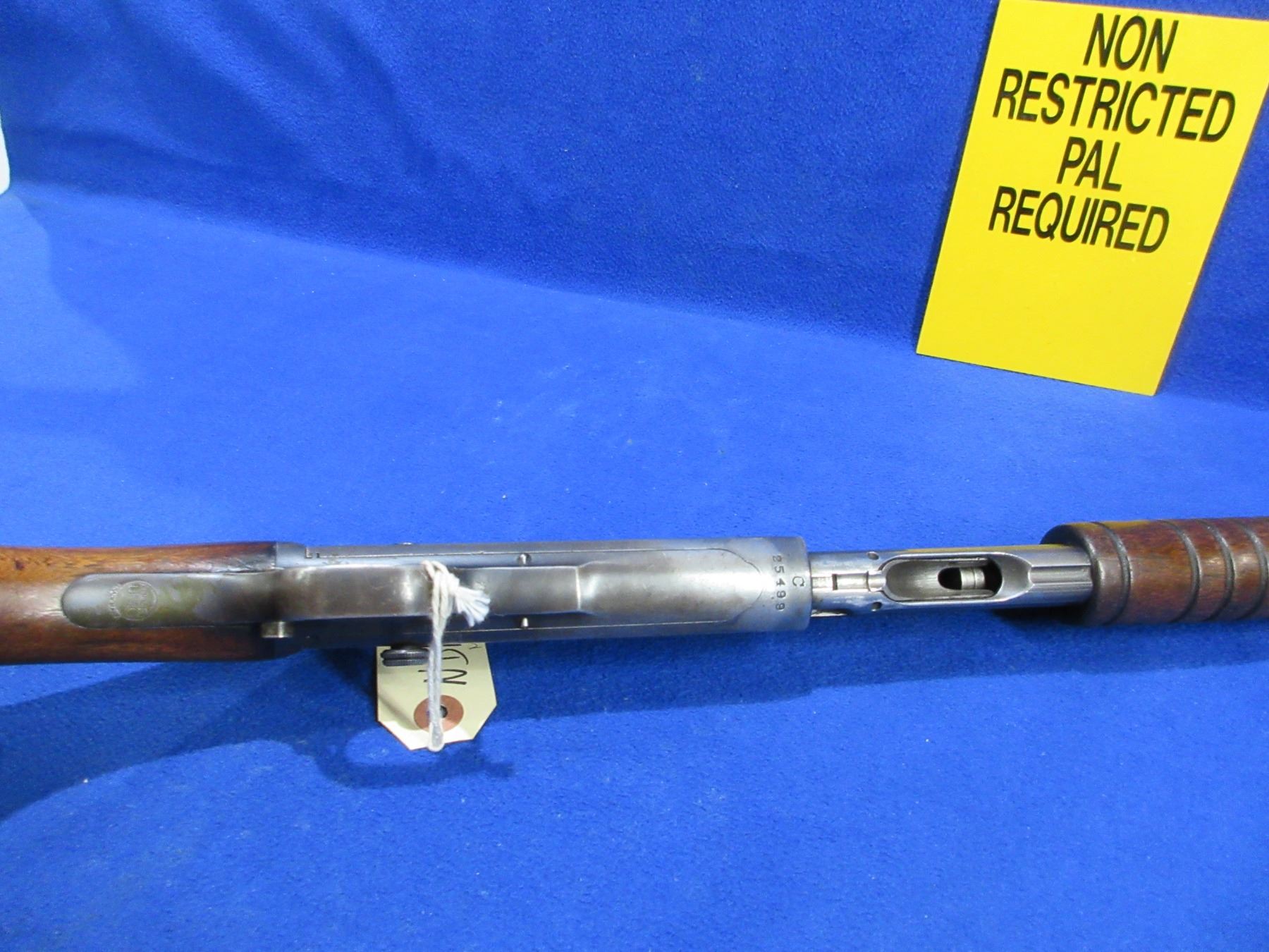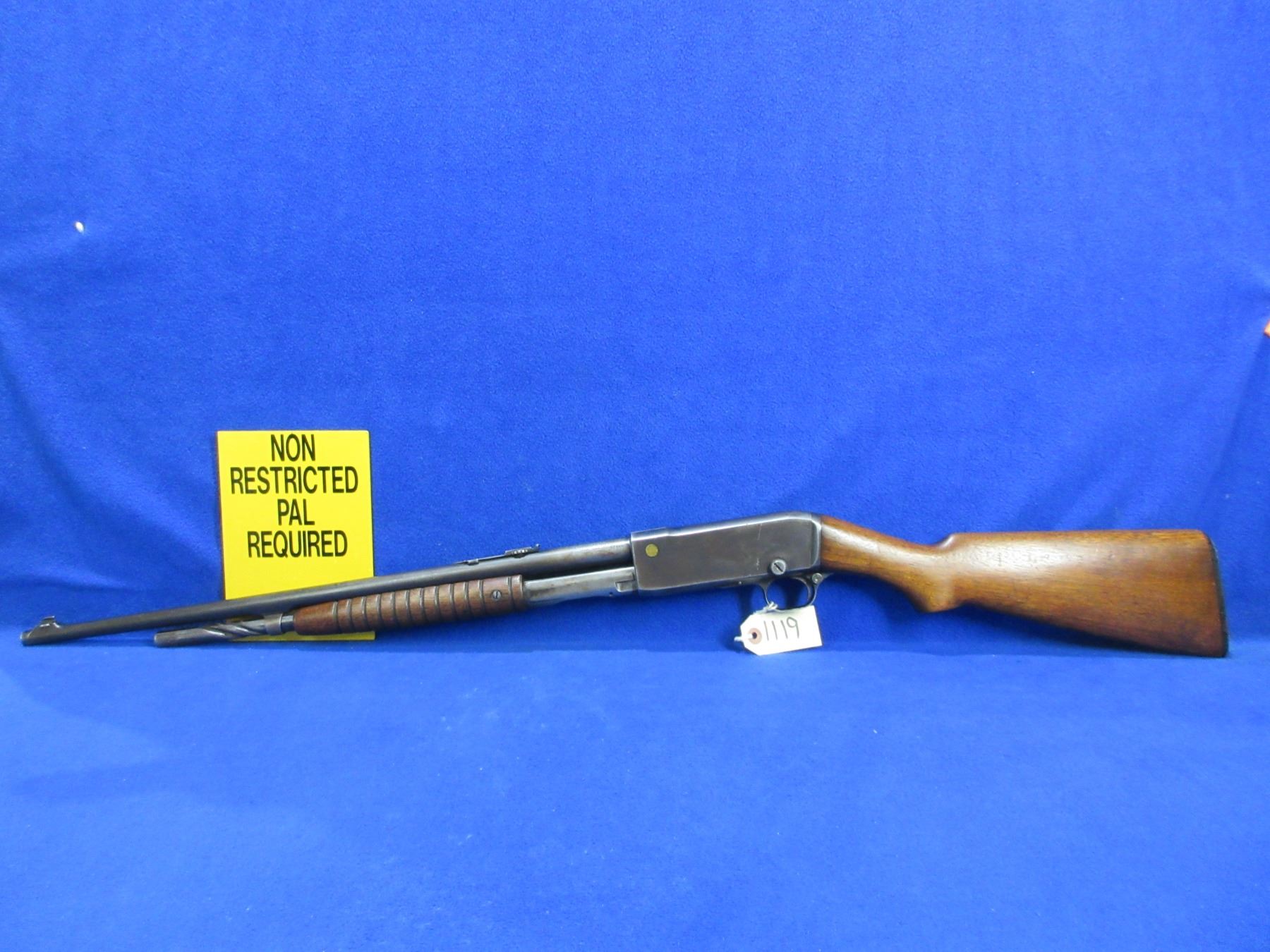 Non-Restricted - Remington Model 14 in 32 Rem - This pump action rifle with tube magazine appears to be in good to very good working order. Barrel is 22", rifling is good, bluing is turning grey, has both sights, stock is good with usage marks, forearm has a crack at bottom front, butt plate poor. Ser # 25499