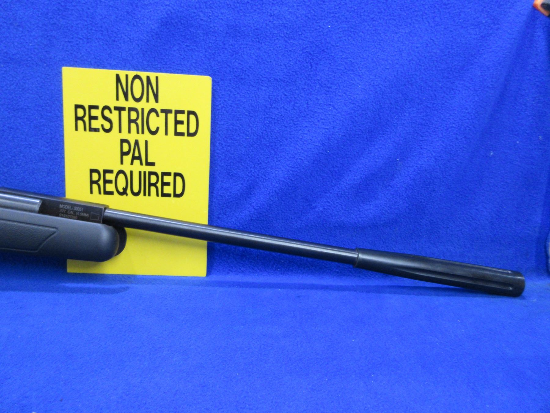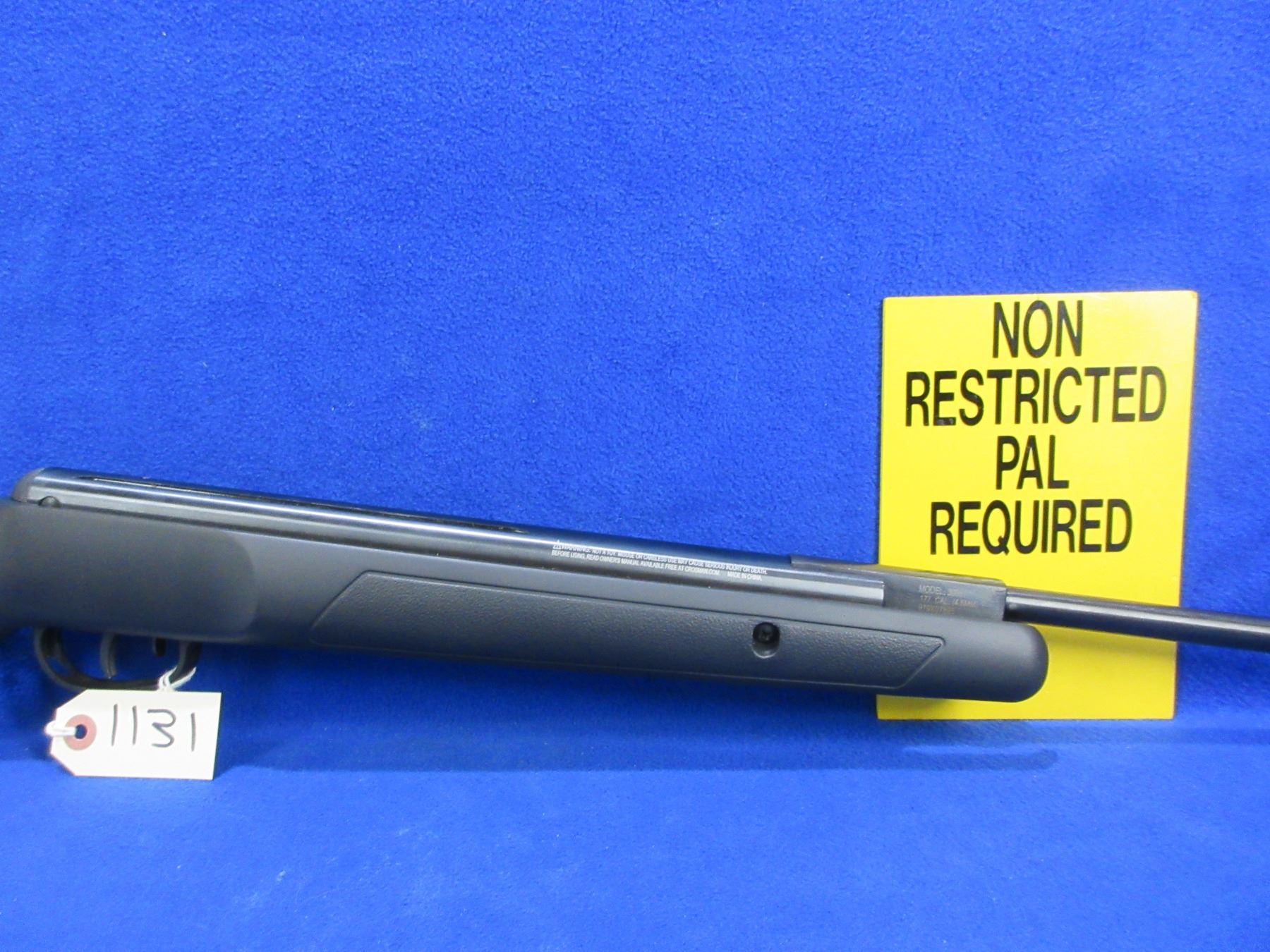 Non-Restricted - Crossman Fury NP Model 30051 in 177 Cal. - This 1200 FPS break barrel action single shot pump air rifle appears to be in good to very good working order. Barrel is 18 5/8", rifling is very good, bluing is good to very good, has no sights but has integral base, synthetic stock is good to very good, rubber pad good. Ser # 919X07895
