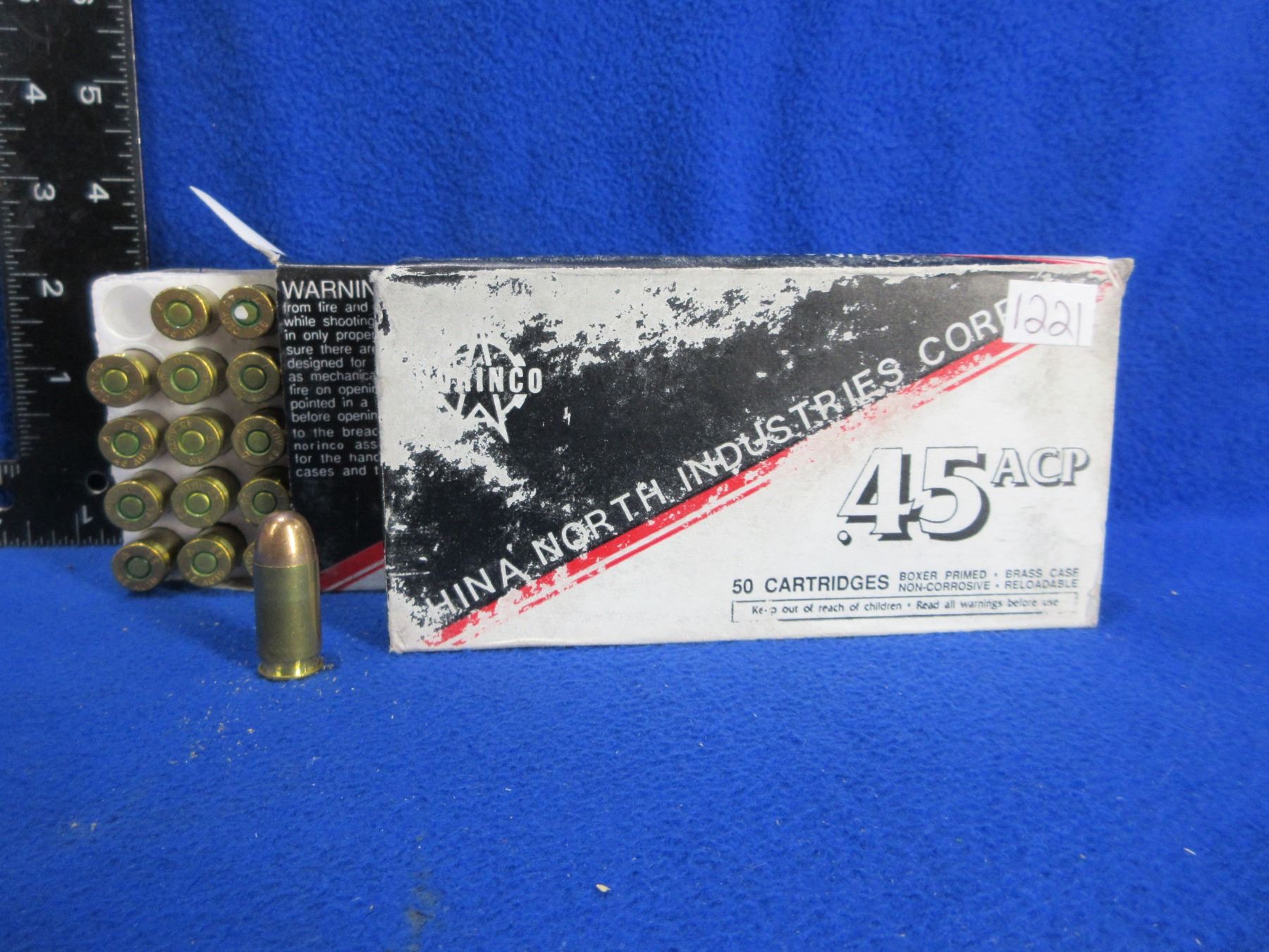 Lot 1221 45 ACP 230gr FMJ Norinco Cartridges - 2 Boxes of 50