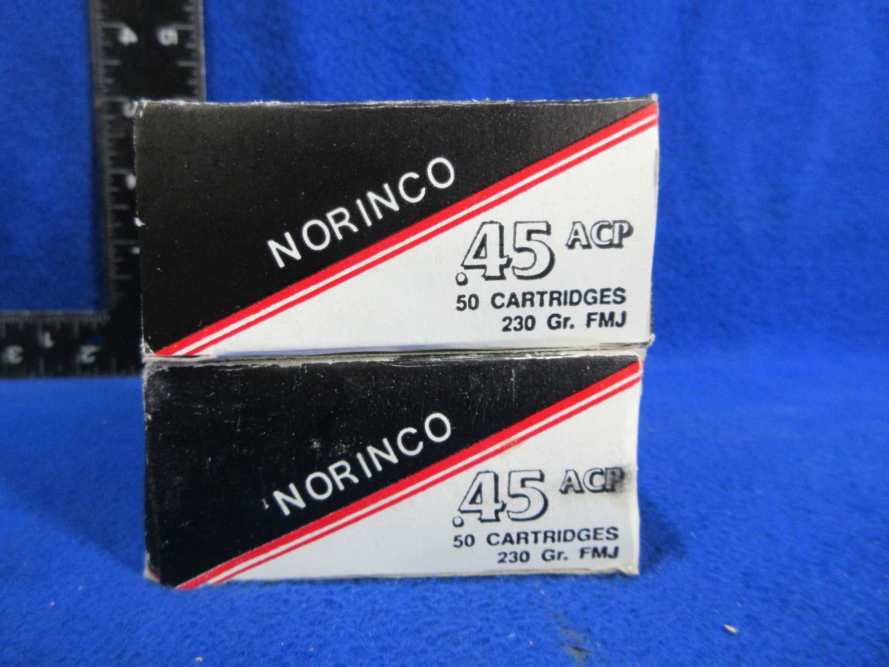 45 ACP 230gr FMJ Norinco Cartridges - 2 Boxes of 50 - PICK UP ONLY