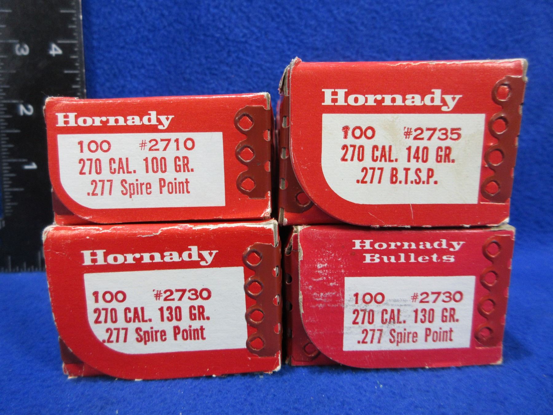 270 Cal. .277" Hornady Bullets - Box of 100 (130gr Spire Point), Box of 60 (130gr Spire Point), Box of 50 (140gr BTSP), Box of 50 (100gr Spire Point)