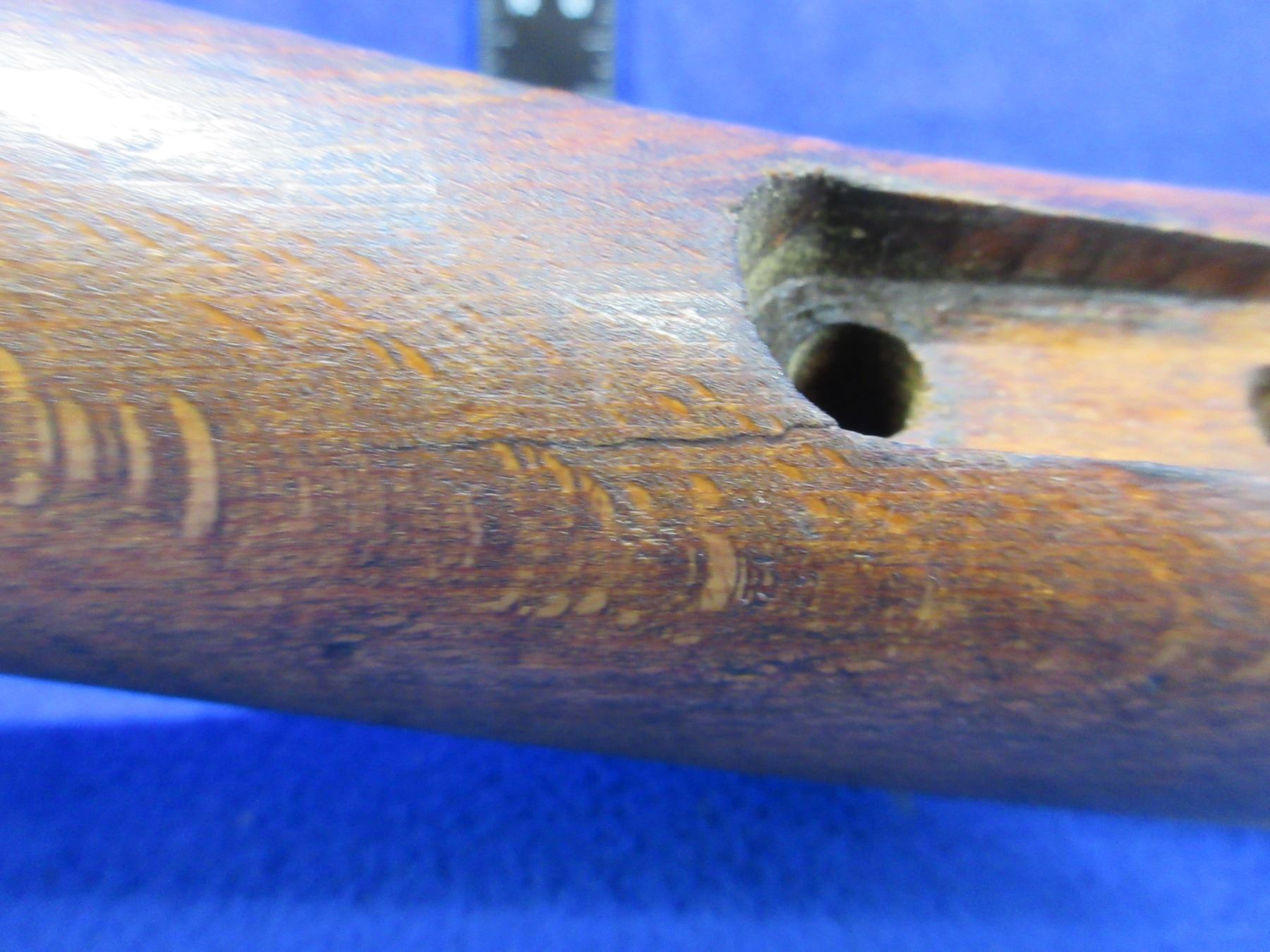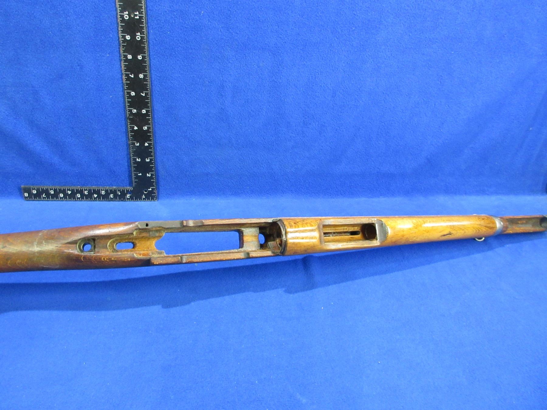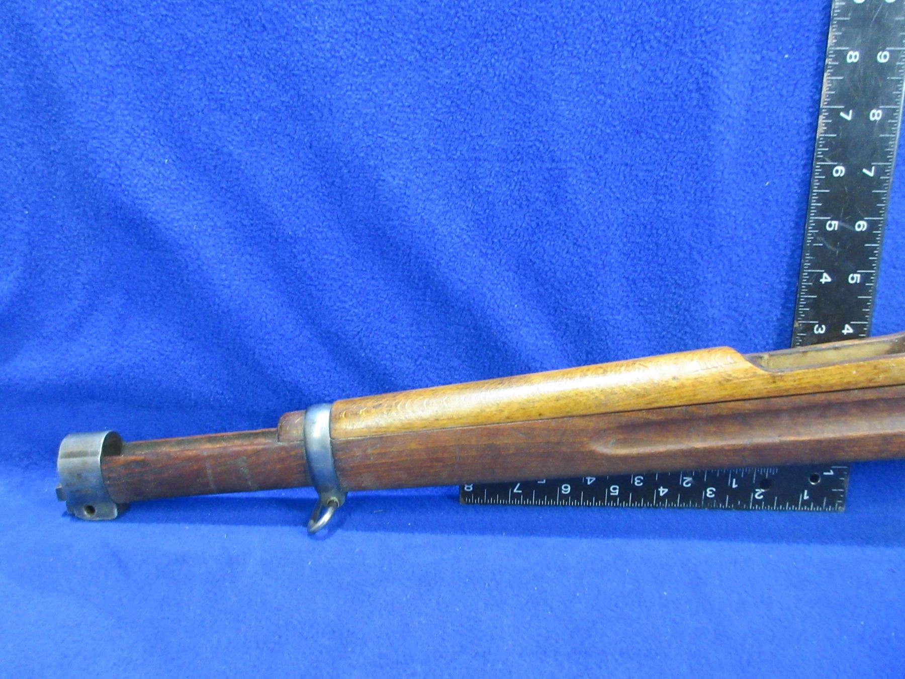 Stock Only - Swedish Mauser M96 Wood Stock with Hand Guard - Stock has 2 hairline cracks on the bottom by the rear tang and hand guard has a hairline crack on the top, comes with swivels, metal butt plate and barrel bands