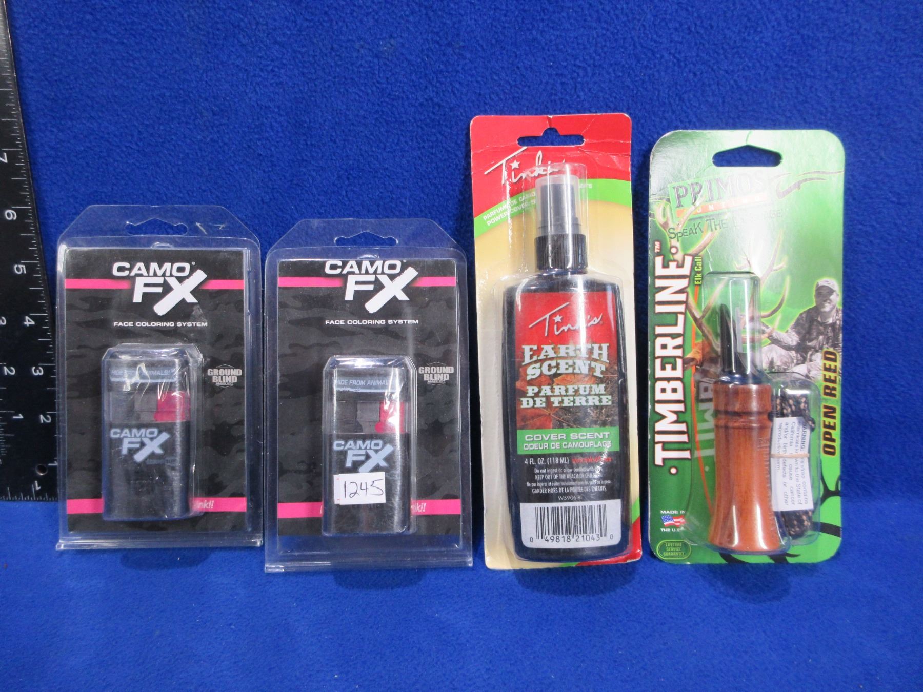 Lot 1245 NEW - 2 Camo FX, Tink's Earth Scent and Primos Elk Call