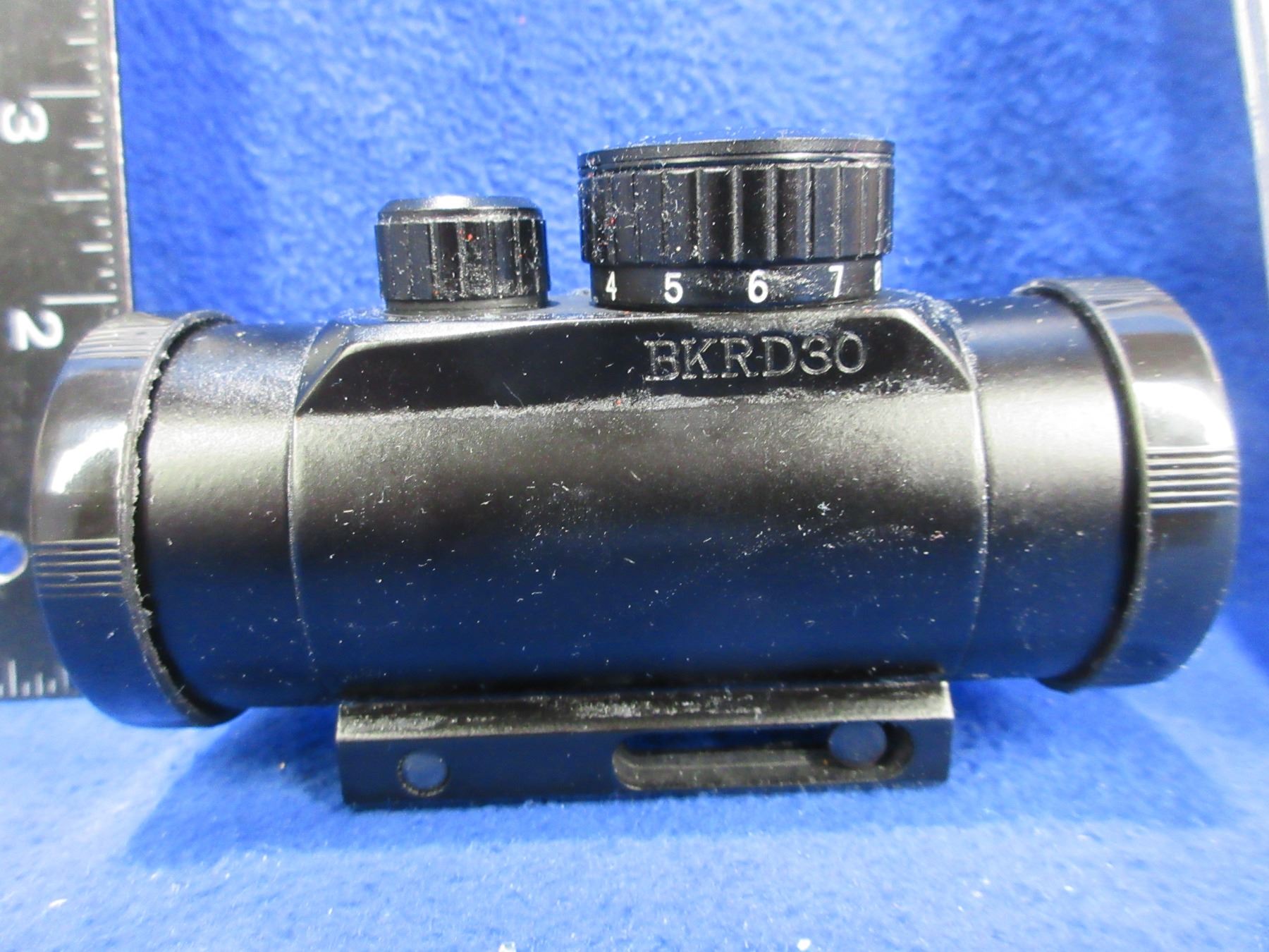 Tasco Red Dot Sight - 1x30mm Magnification - 5 MOA Illuminated Dot - Tested working at time of cataloging.