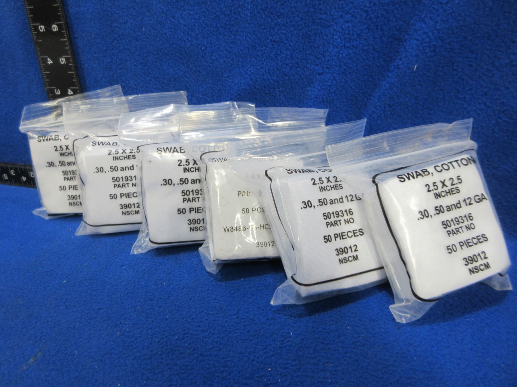 Lot 1282 NEW - Cotton Swabs - 2.5" x 2.5" - 6 Packs of 50