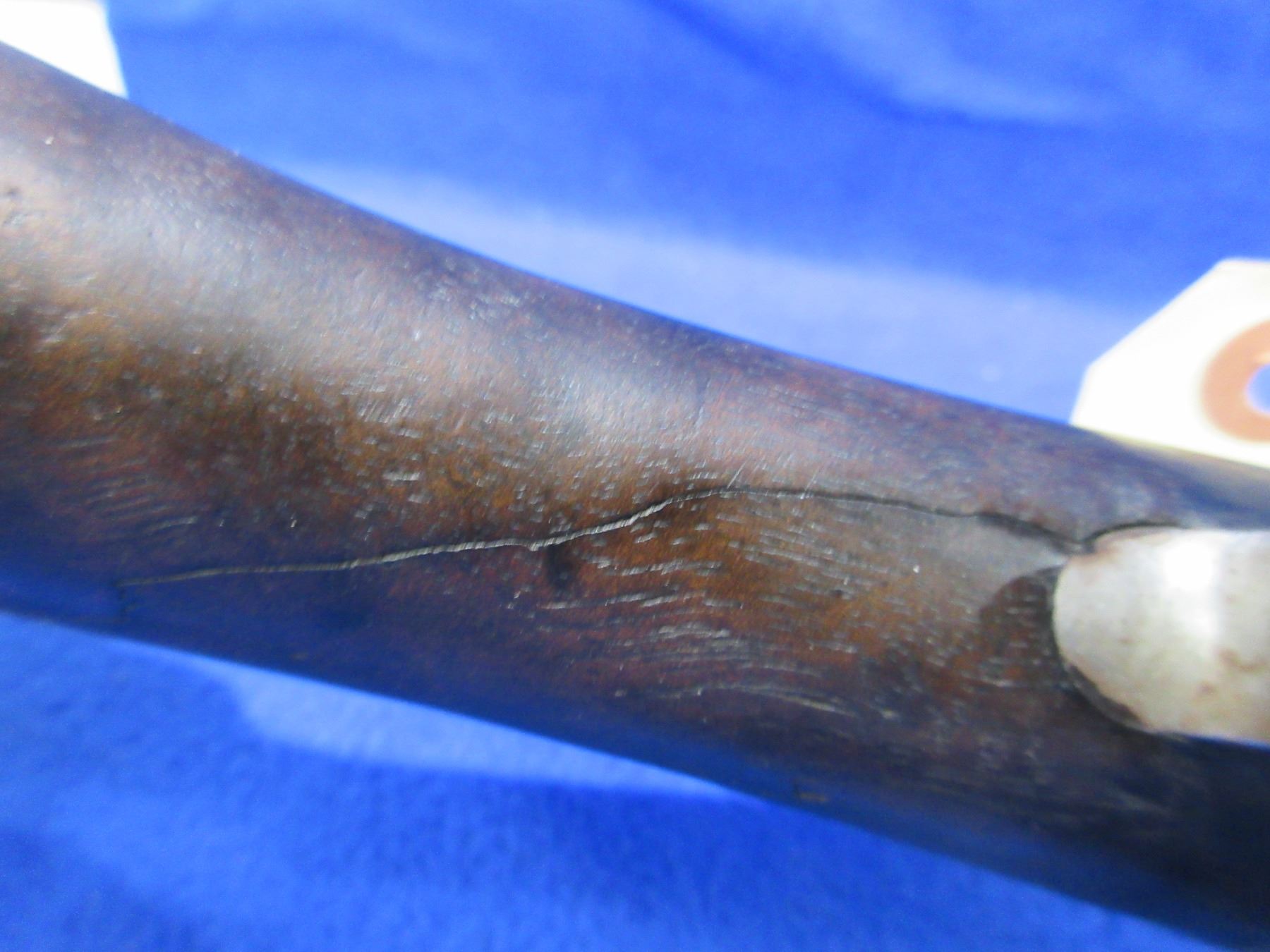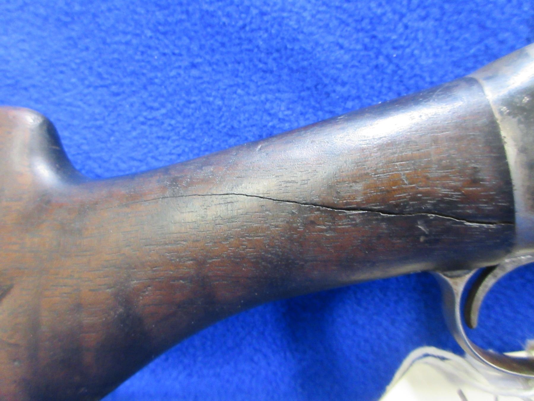 Non-Restricted - Winchester Model 1897 in 12 Ga. 2 3/4" - This pump action shotgun is in non-working order as stock and action are damaged, action does pump through, cock and fire. Barrel is 30", bore is good, bluing is patchy, has bead front sight, stock is broken in wrist area, forearm is broken with half missing, metal butt plate good. Ser # 97096