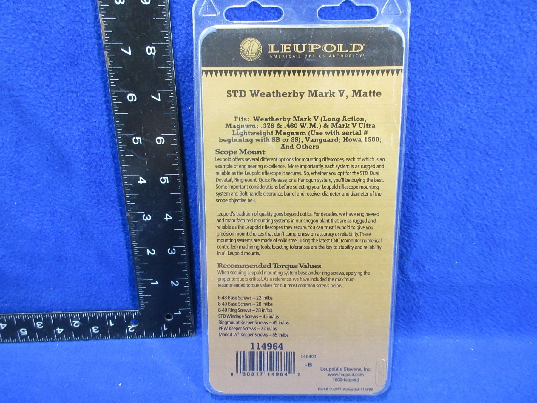 NEW - Leupold STD Weatherby Mark V 2 Piece Base and High Rings, Matte # 114964