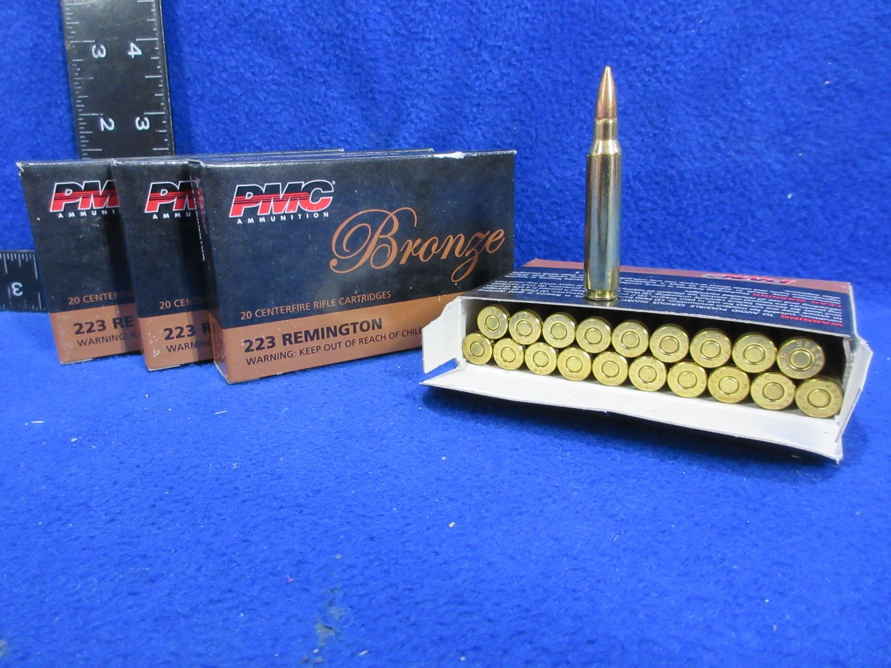 223 Rem. 55gr FMJ BT PMC Bronze Cartridges - 4 Boxes of 20 - PICK UP ONLY