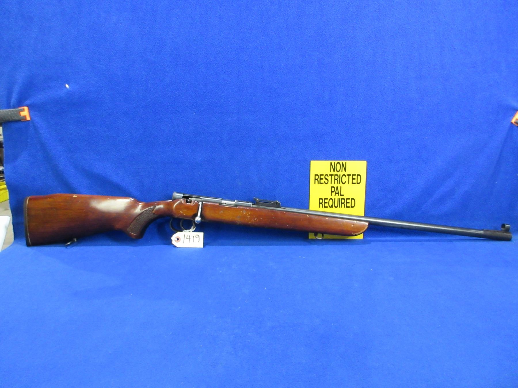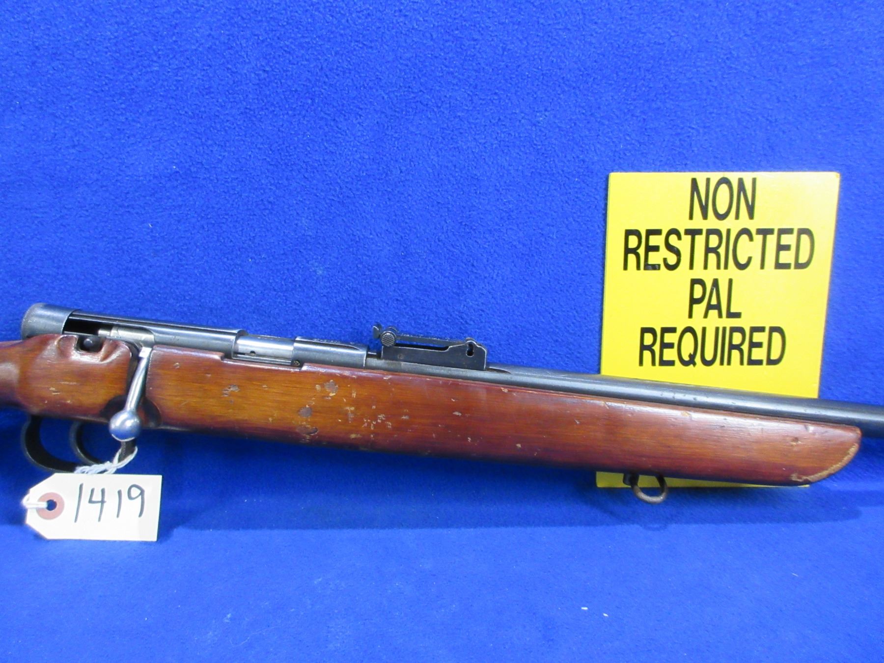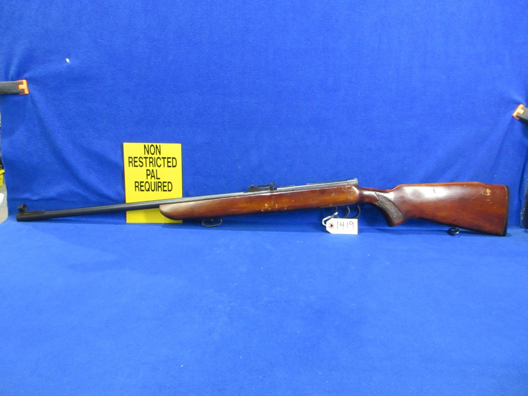 Non-Restricted - TOZ Model 8-01 in 22 LR - This single shot bolt action rifle appears to be in good to very good working order. Barrel is 25 1/4", rifling is good to very good, bluing is good with some light pitting, has both sights, stock is good with many usage marks, butt plate good, comes with swivels. Ser # 85N9522