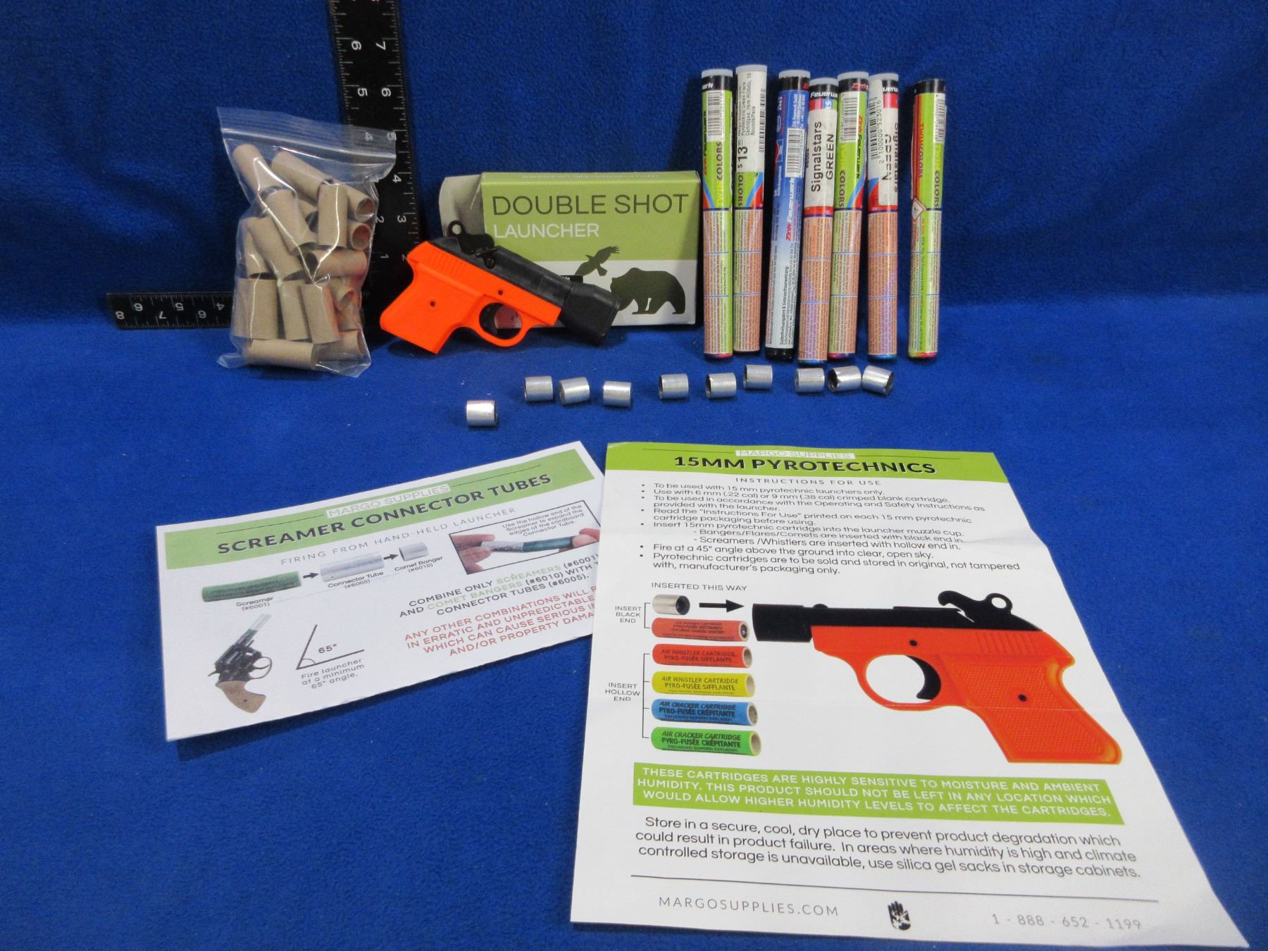 Margo Supplies 15MM Pyrotechnic Launcher with Flares - Double Shot Launcher with 7 Signal Stars Tubes and Connectors