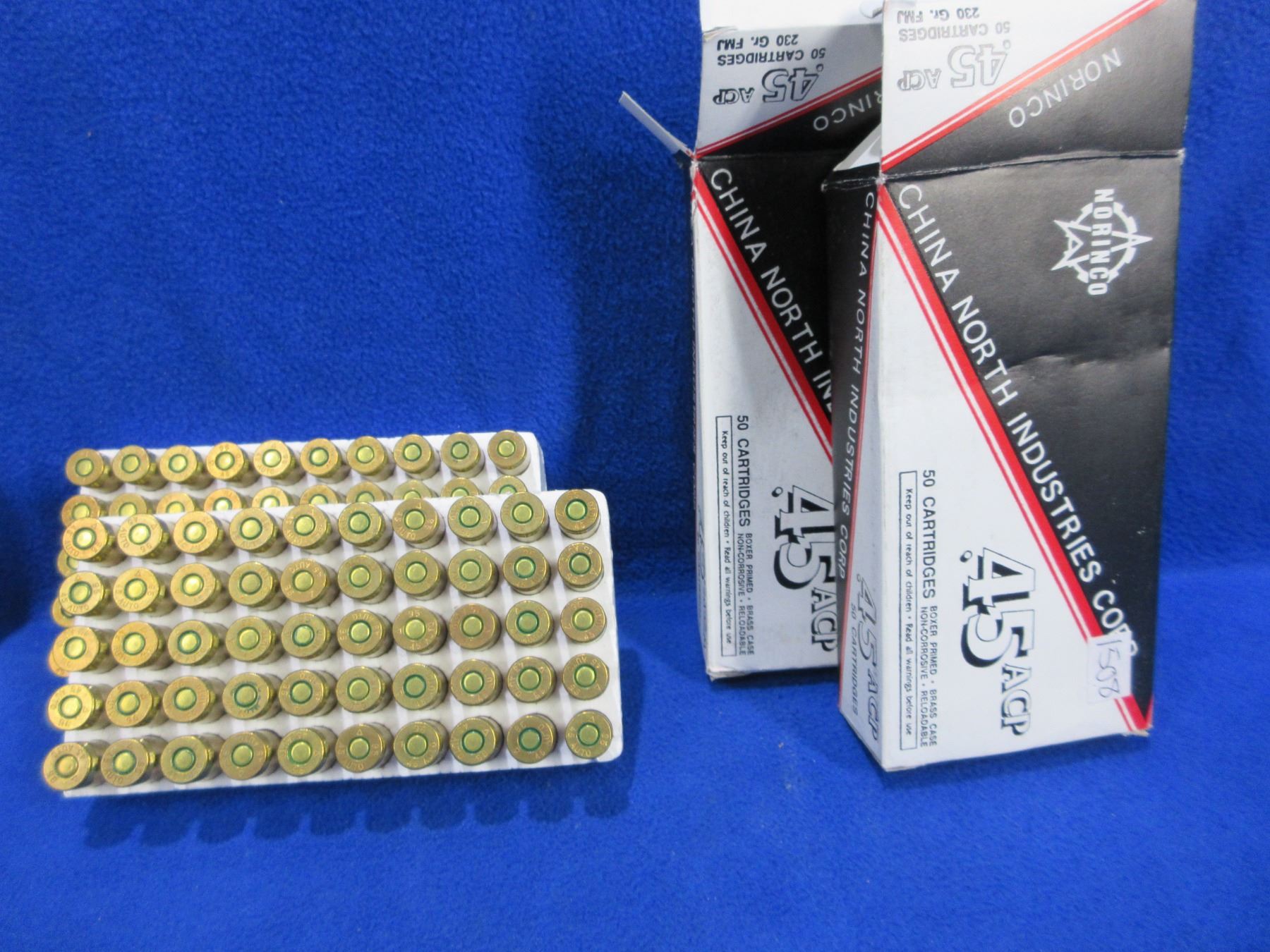 Lot 1508 45 ACP 230gr FMJ Norinco Cartridges - 2 Boxes of 50