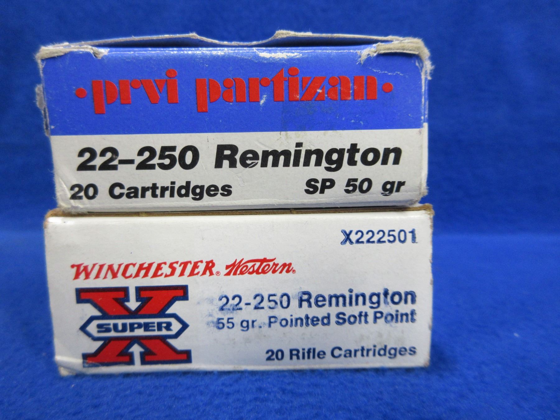 22-250 Rem. Winchester and Prvi Partizan Cartridges - Box of 20 (Win. 55gr PSP), Box of 14 + 5 Brass (PPU 50gr SP) - PICK UP ONLY