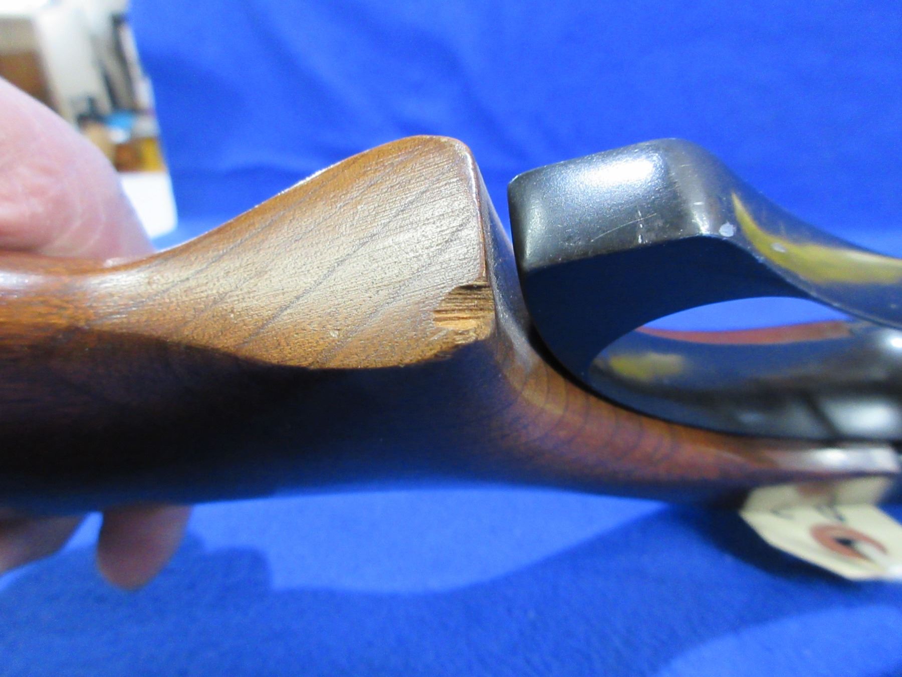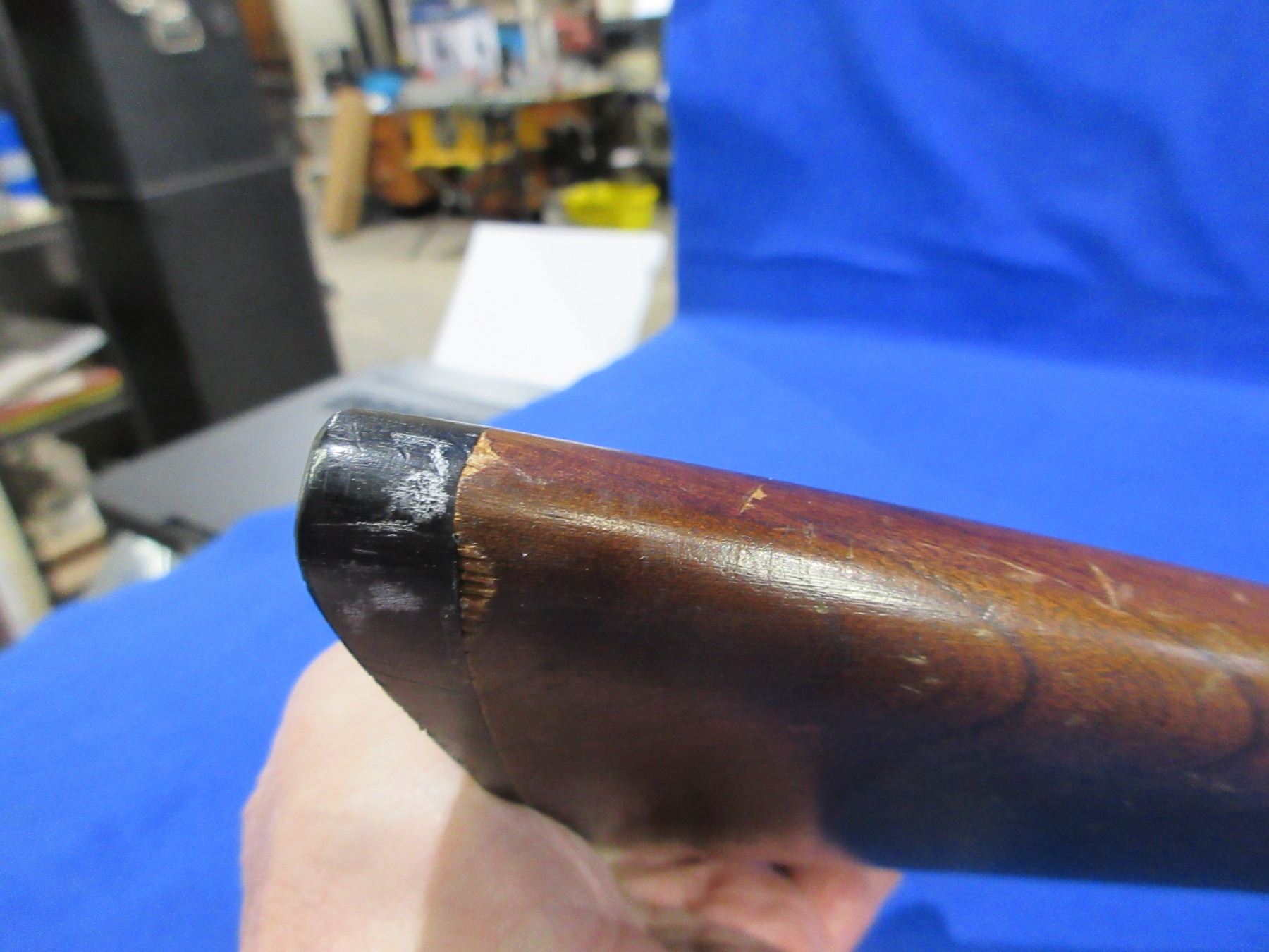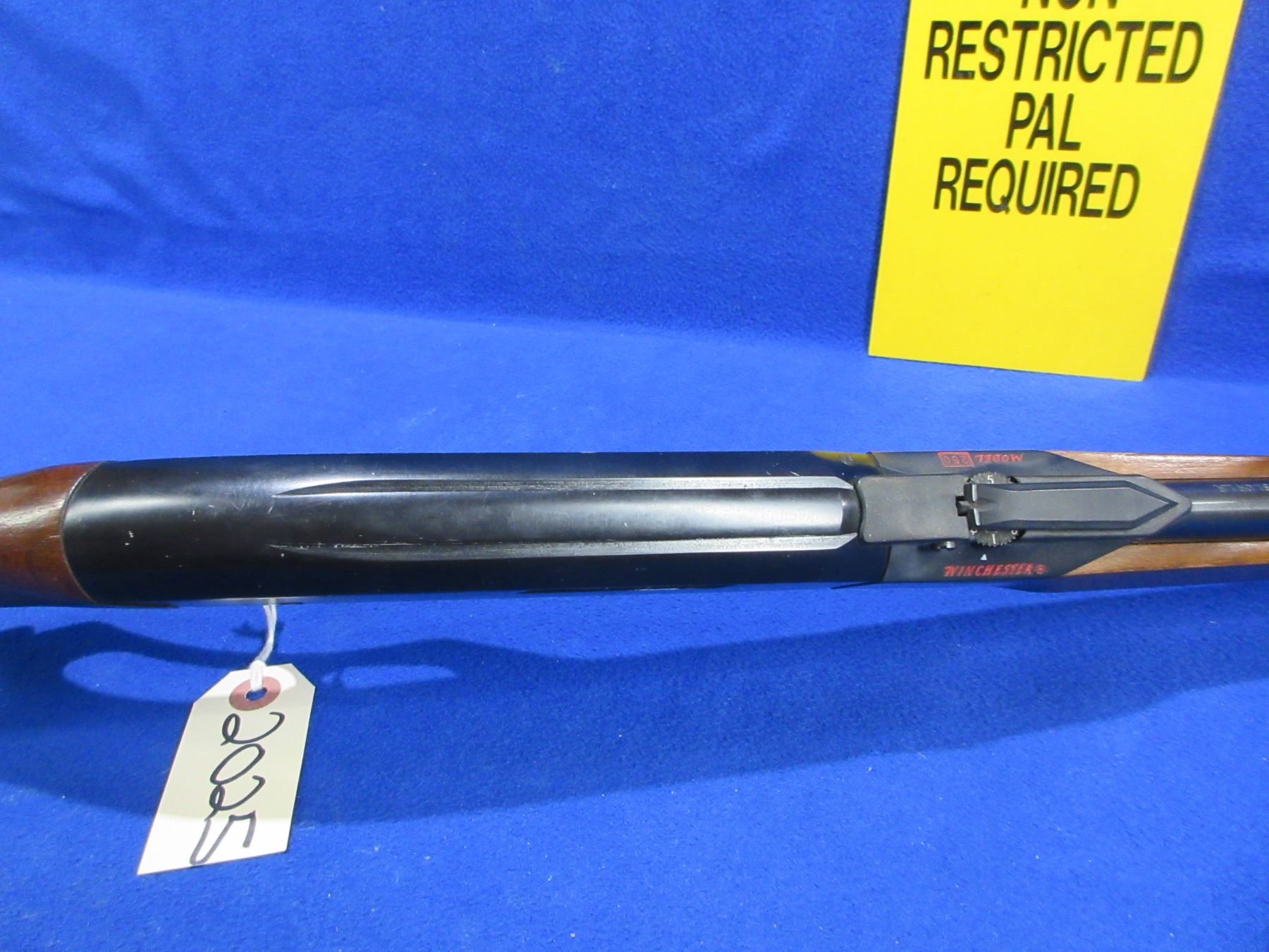Non-Restricted - Winchester Model 250 in 22 S/L/LR - This lever action rifle with tube magazine appears to be in good to very good working order. Barrel is 20 1/2", rifling is good to very good, bluing is good, has both sights, front sight band is cracked on the left side and integral rail, stock has a chip at the wrist cap area and a ship at the toe, forearm is good with usage marks, butt plate good. Ser #None
