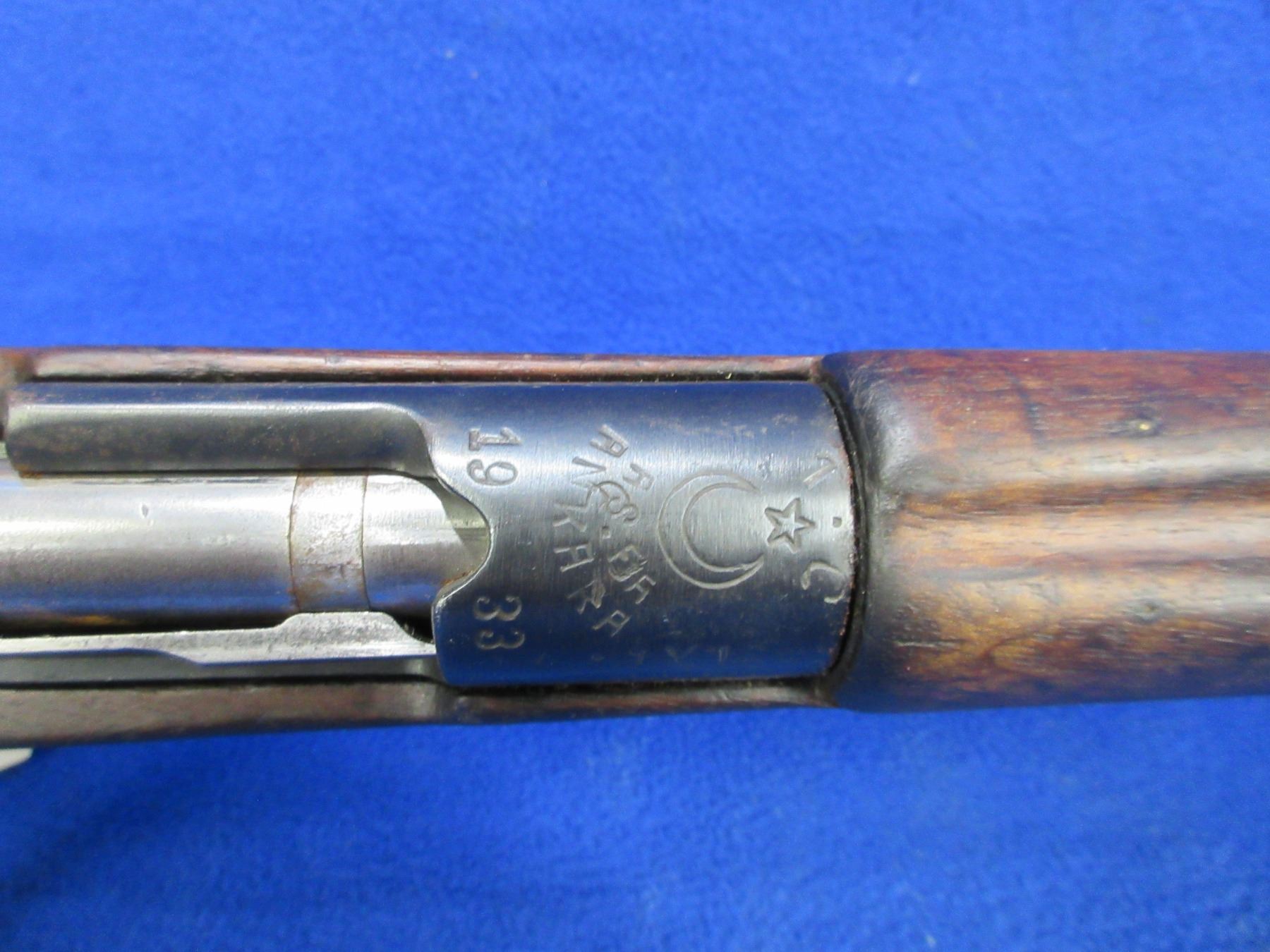 Non-Restricted - Turkish Mauser in 8mm - Marked 1933, this bolt action rifle with floorplate magazine appears to be in good to very good working order. Barrel is 29", rifling is poor, bluing is good, has both sights, full wood stock is good for age with usage marks, metal butt plate good, comes with swivels. Ser #6216