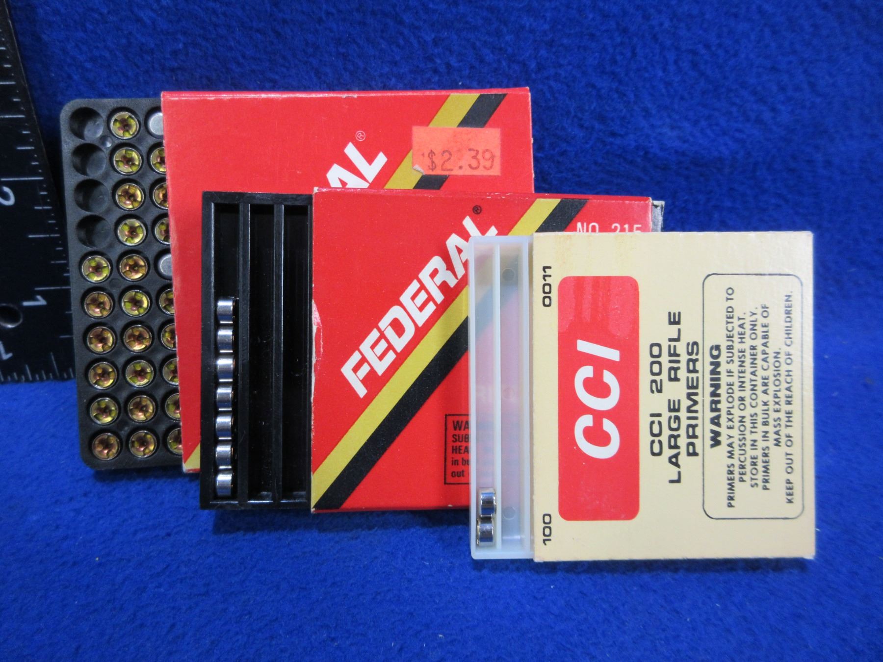 Large Rifle Primers and Large Rifle Magnum Primers - Box of 96 (Federal No. 210), Box of 2 (CCI 200), Box of 7 (Federal No. 215 Magnum) - PICK UP ONLY