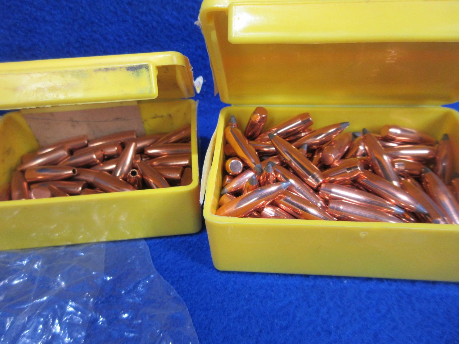 270 Cal. .277" Nosler and Speer Bullets - Box of 81 (Speer 130gr BT), Box of 50 (Speer 100gr HP), Box of 8 (Nosler 130gr Spitzer), Bag of 100 (Unknown 130gr PSP)