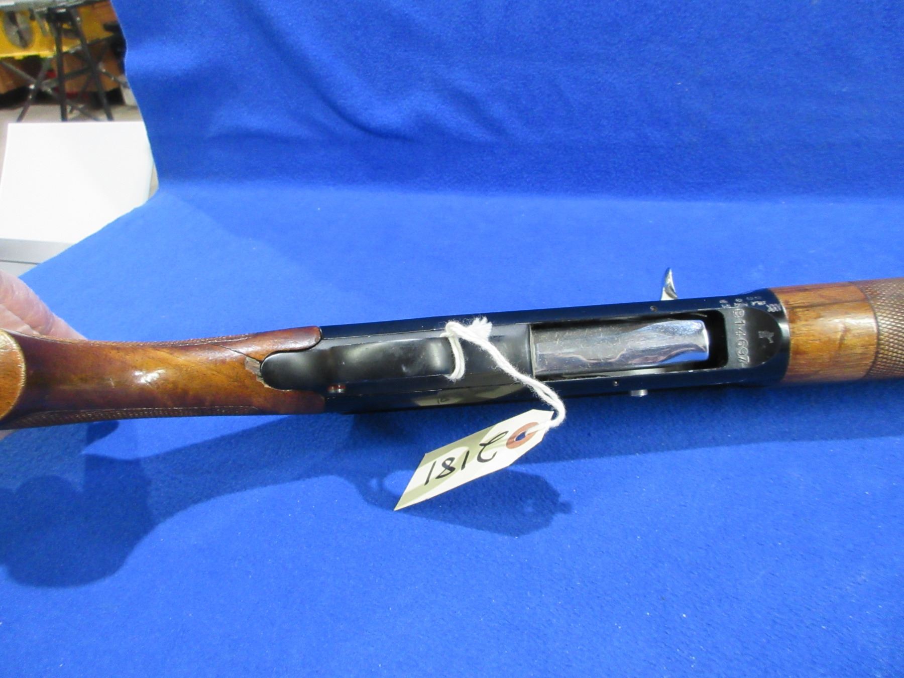 Non-Restricted - Franchi Model 45/AL in 12 Ga. 2 3/4" - This semi-auto shotgun appears to be in good working order but should not be fired as stock is broken. Barrel is 30", bore is good to very good, bluing is good, has blade front sight, stock has two large cracks in the wrist area, forearm has a hairline crack at top right at back, butt plate good. Ser #B14697
