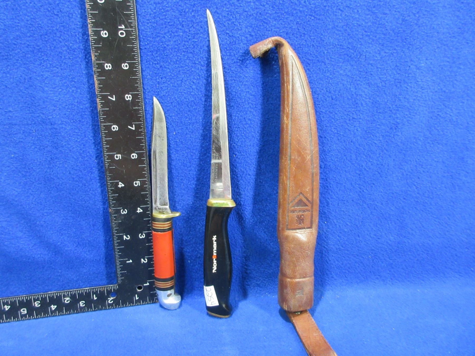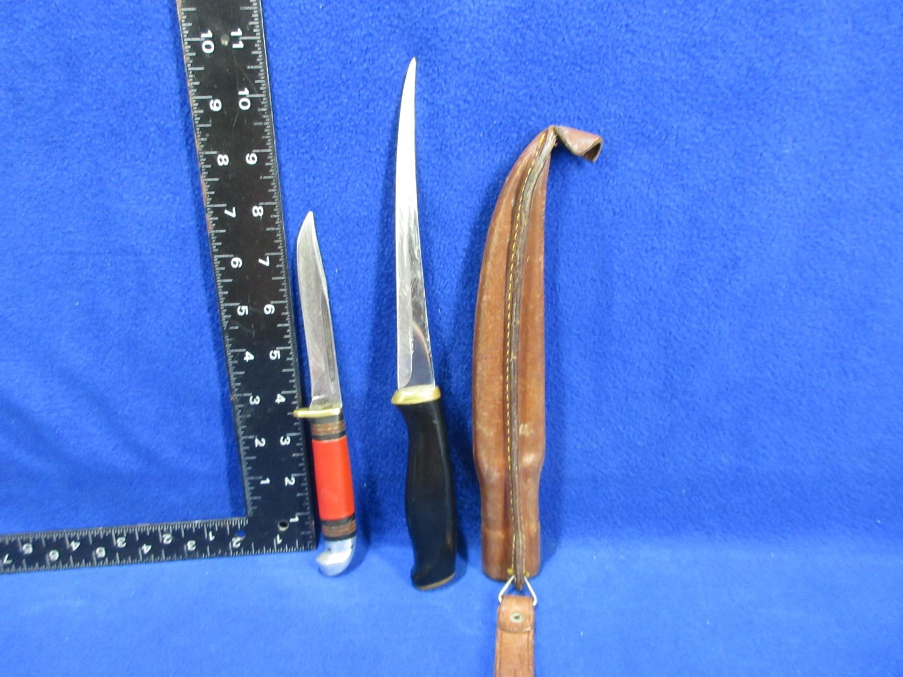 Normark Fillet Knife with Leather Sheath (6 1/2" Blade) & Western Cutlery P48A Fixed Blade Knife (4" Blade)
