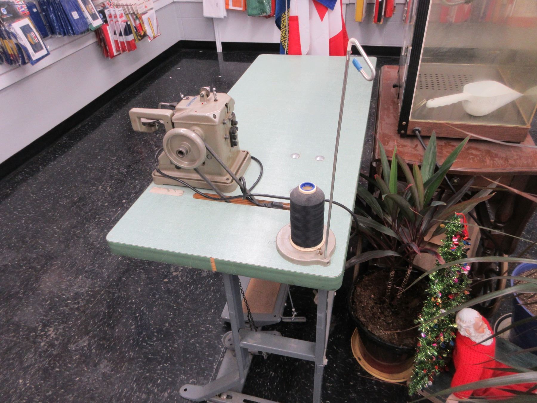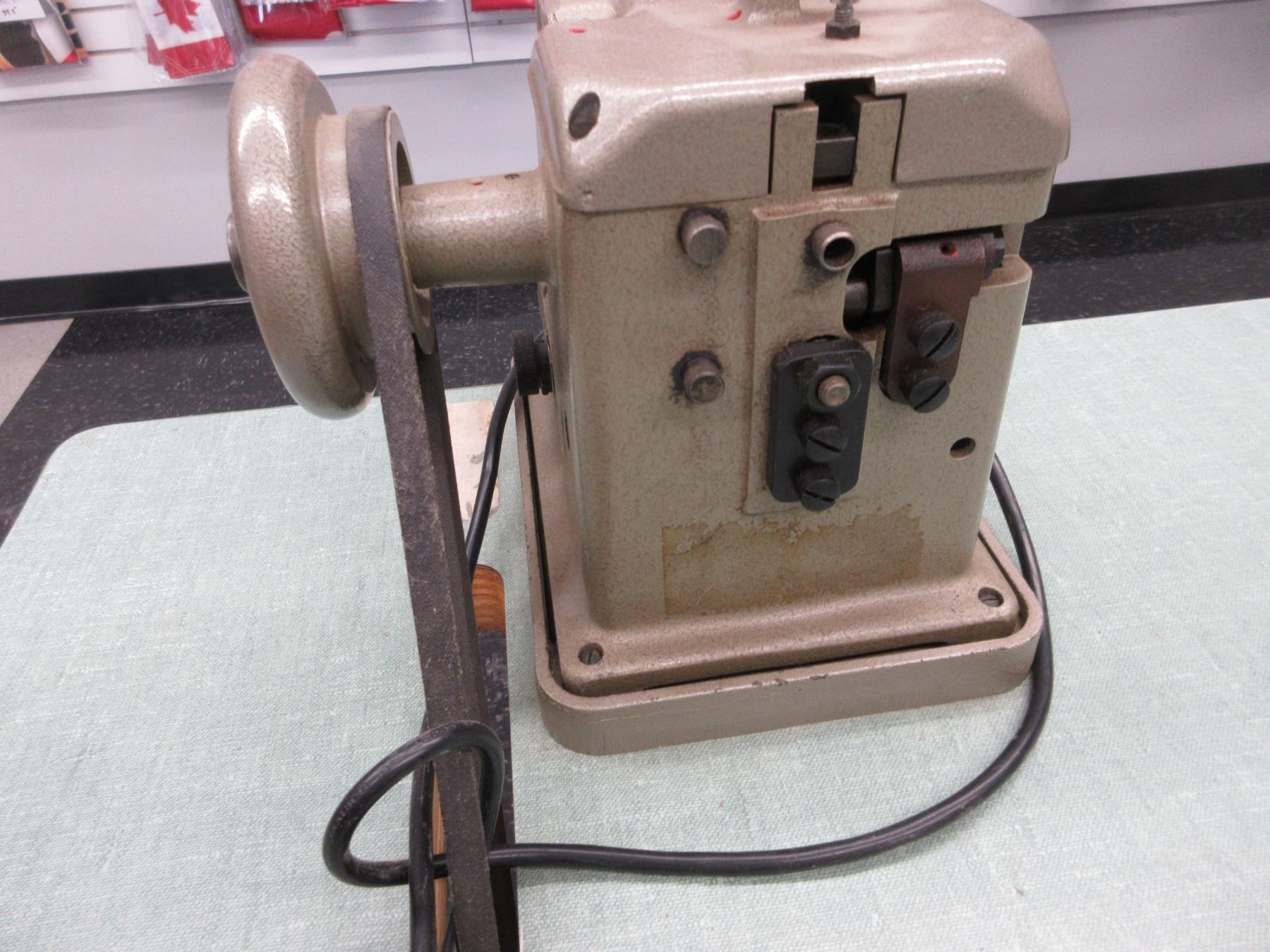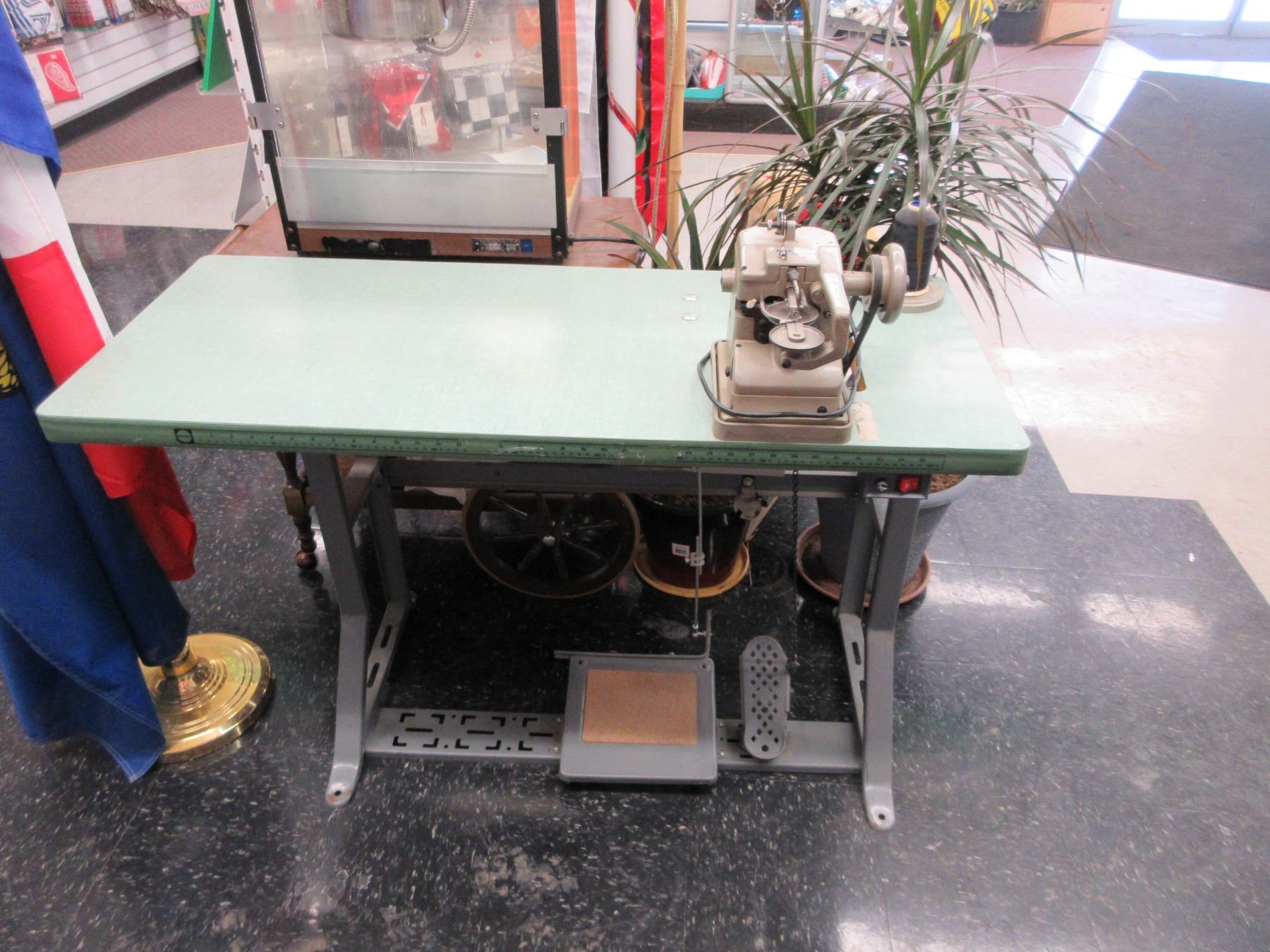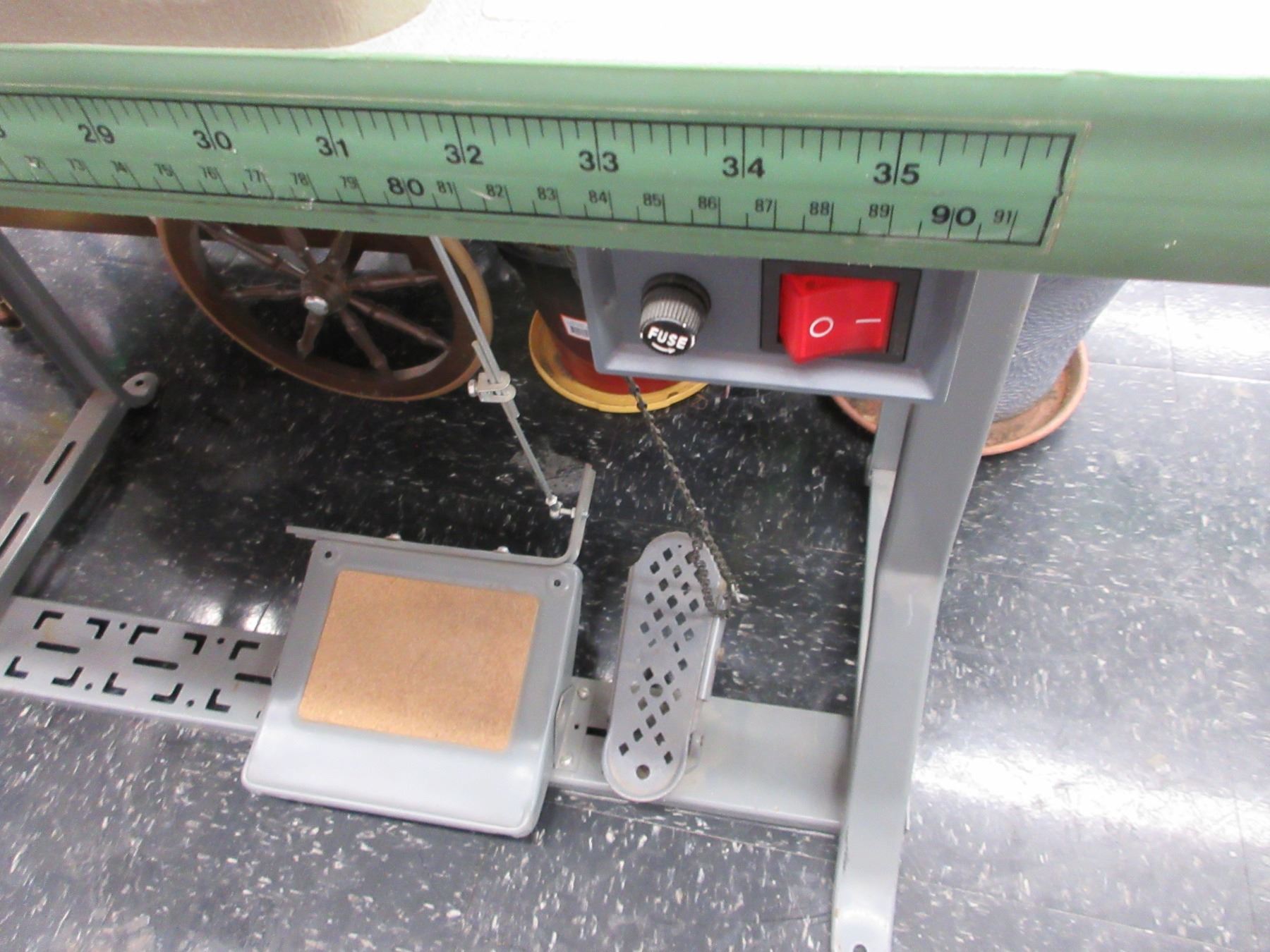Lot 2302 Leather Sewing Machine with Table and Foot Pedals