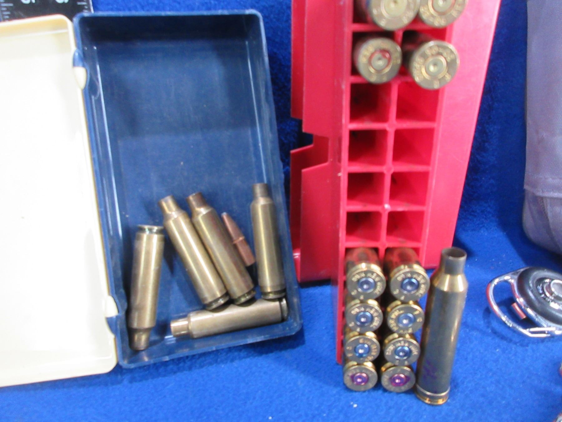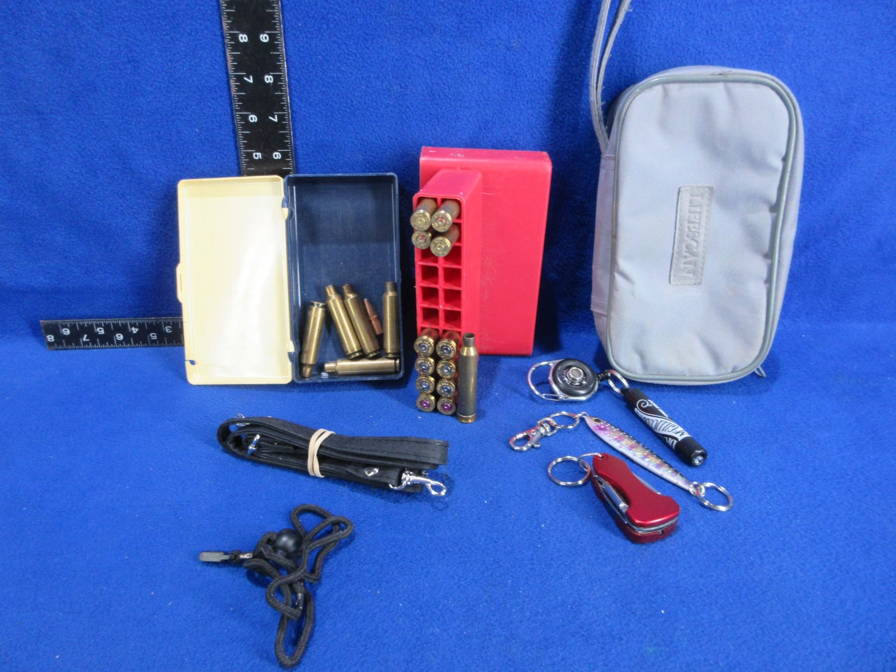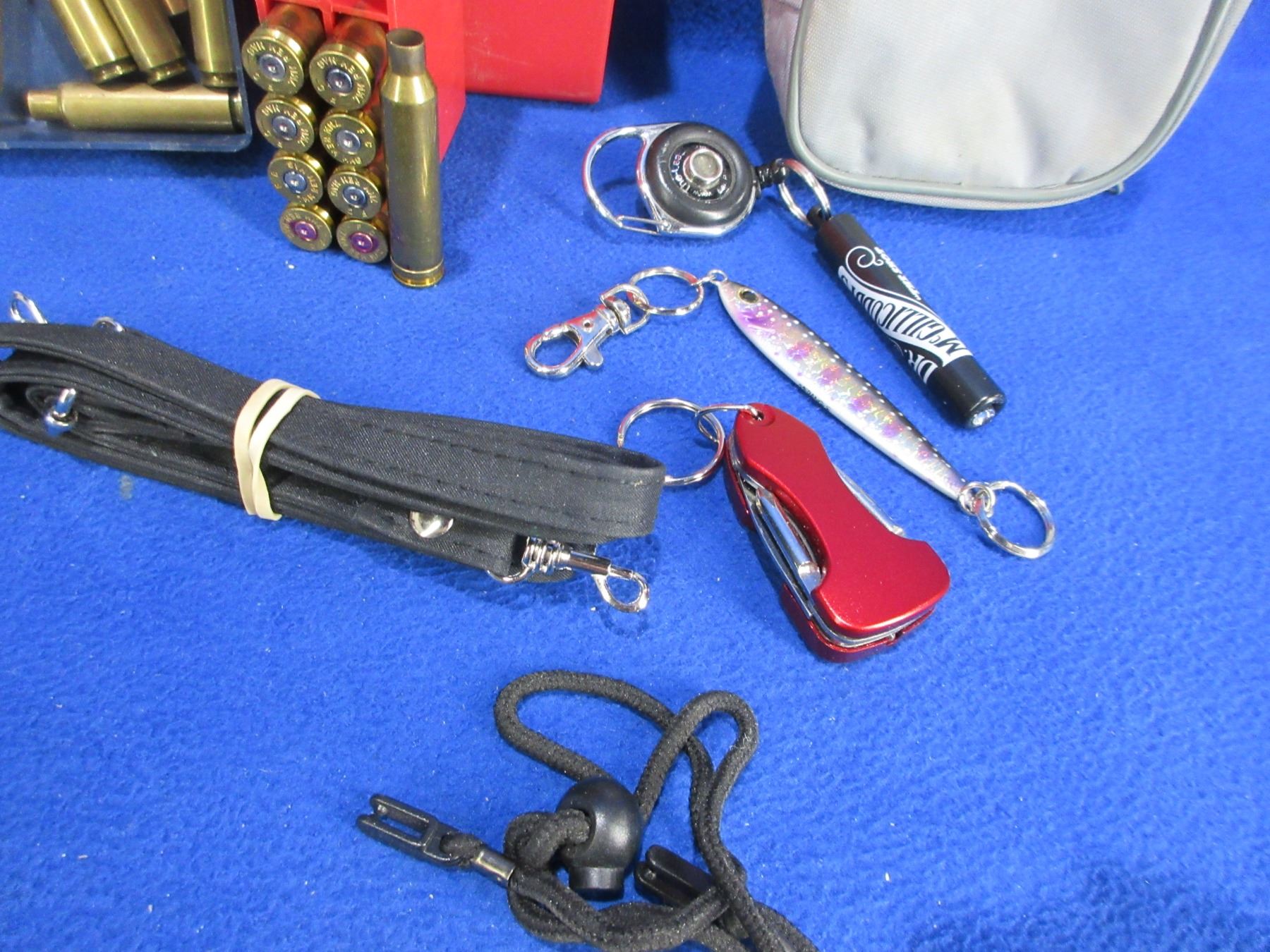 Lot of Misc - Mixed Brass (7MM Rem. Mag x 9, 25-06 Rem. x 3, 284 Win. x 5, 30-06 x 1), Strap, Flashlight, Key Chain, Etc.