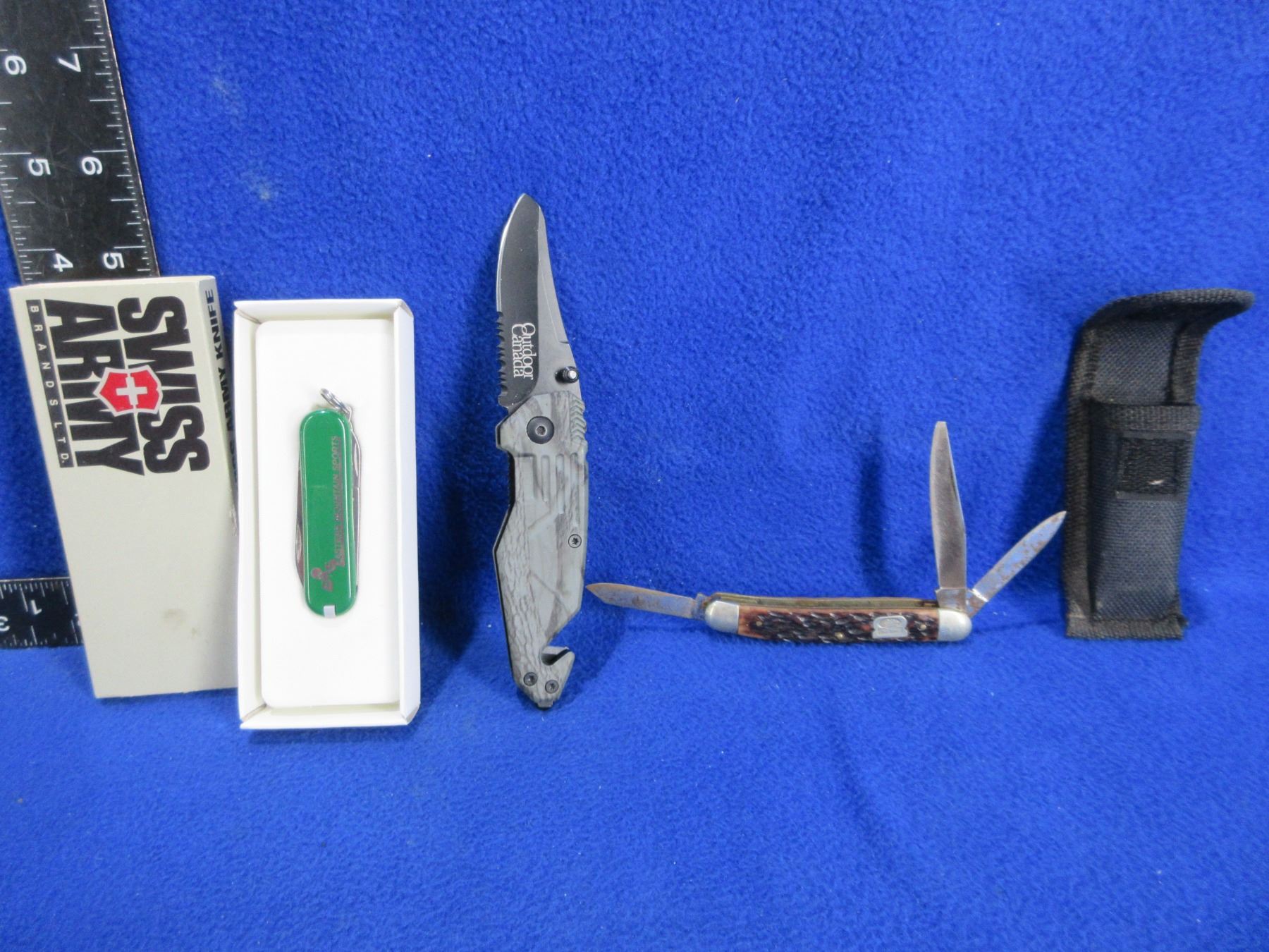 Lot 2470 3 Folding Blade Knives - Swiss, Premier, Outdoor Canada
