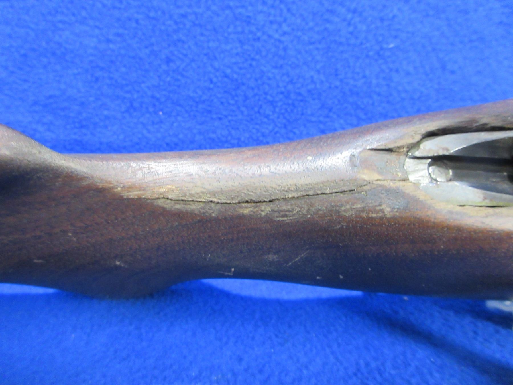 Non-Restricted - Husqvarna Model M96 in 9.3x57 - This bolt action rifle with floorplate magazine is in non-working order as trigger assembly is missing. Barrel is 18 1/2", rifling is good to very good, bluing is good with some rust and pitting, front sight missing, has rear sight and Weaver style base, stock has a crack behind the upper tang, butt plate good, comes with front, swivel, rear stud is missing. Ser #40982