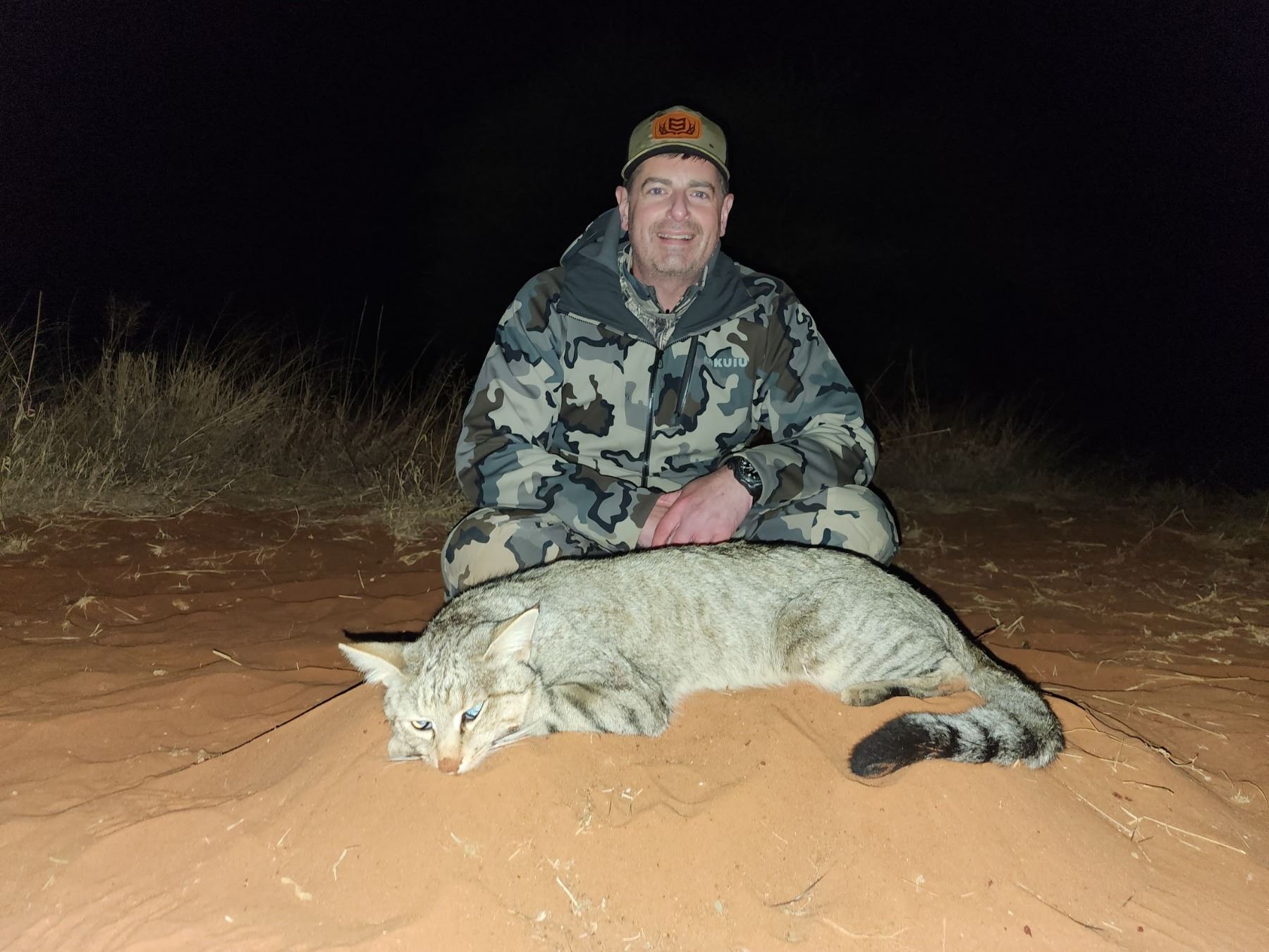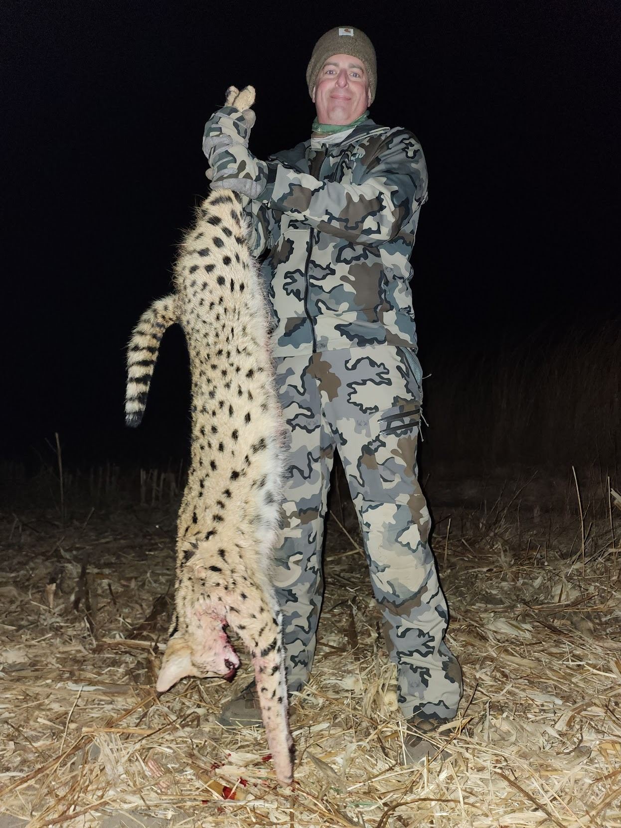 Available animals included in your night safari are Serval, Caracal, African Wildcat, White-tailed Mongoose, Brown Water Mongoose and Genet. Note this is a list of potential animals that can be taken on any given night hunt. Every effort will be made to harvest as many of these animals as possible. If you have a preference for particular animals please relay this information prior to your hunt. Method of take is hunter’s choice, however rifle is preferred and provides a higher success rate. Schedule your hunt with the outfitter for open dates in 2026 or 2027. Additional plains game and dangerous game can be arranged during your safari for an additional fee. Arrival/Departure point is Johannesburg(OR Tambo International Airport)