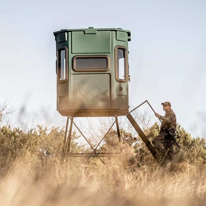 **Exhibitor** The bow and rifle combo Pro Blind is built for the hunter that wants the best. This 6'X6' blind has enough room for you and a few friends or a family of four. Offering industry-leading features, visibility and comfort, it is the best blind on the market today. Three tinted horizontal rifle windows , Four tinted vertical bow windows, One-piece rotational molded construction using only the best UV stabilized polyethylene on the market, 3" overhanging roof to keep rain off the door and windows, Noise reduction hinges on door and windows, Wood sub floor to provide a solid base for a stabilized shot, Trim seal on all edges to keep out the elements. High-Density Foam flooring provides a quiet hunting experience, Space for up to three hunters and tall enough so that you can stand, - Optional Add Ons - Delivery within 100 miles for $200 and Elevation Bundles $500(4ft), $750(8ft), $900(12ft) Proudly made in the USA Value - $3,000 100% Donation