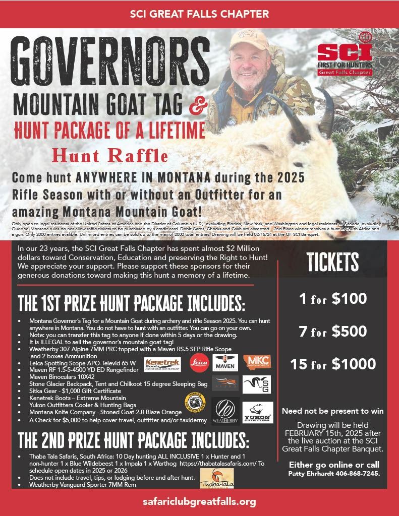 2025 Montana Governors Mountain Goat Tag Raffle.
