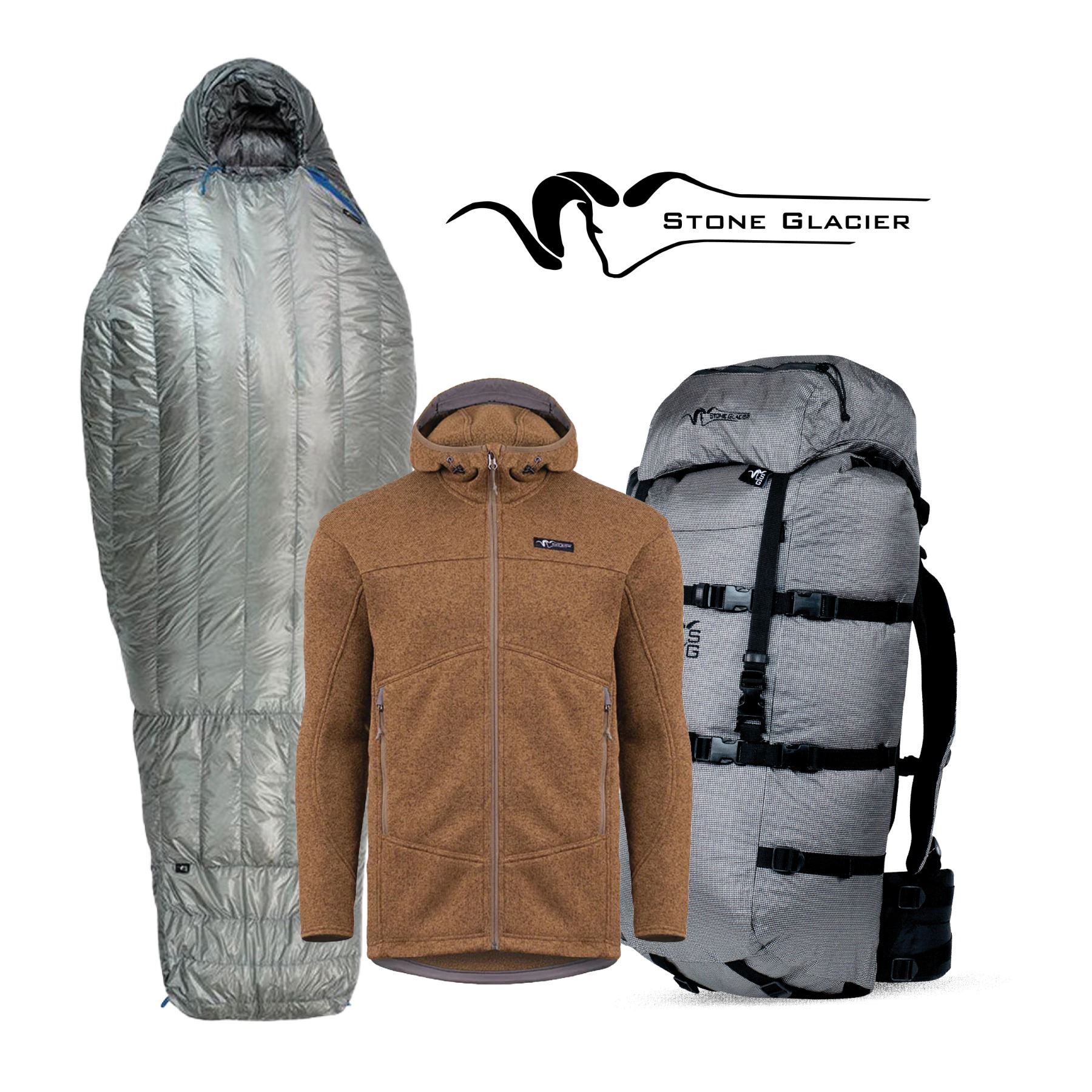Lot 176 "STONE GLACIER GEAR PACKAGE (Chilkoot 0 sleeping bag, Zenith Fleece Hoody, Sky Archer 6400)"