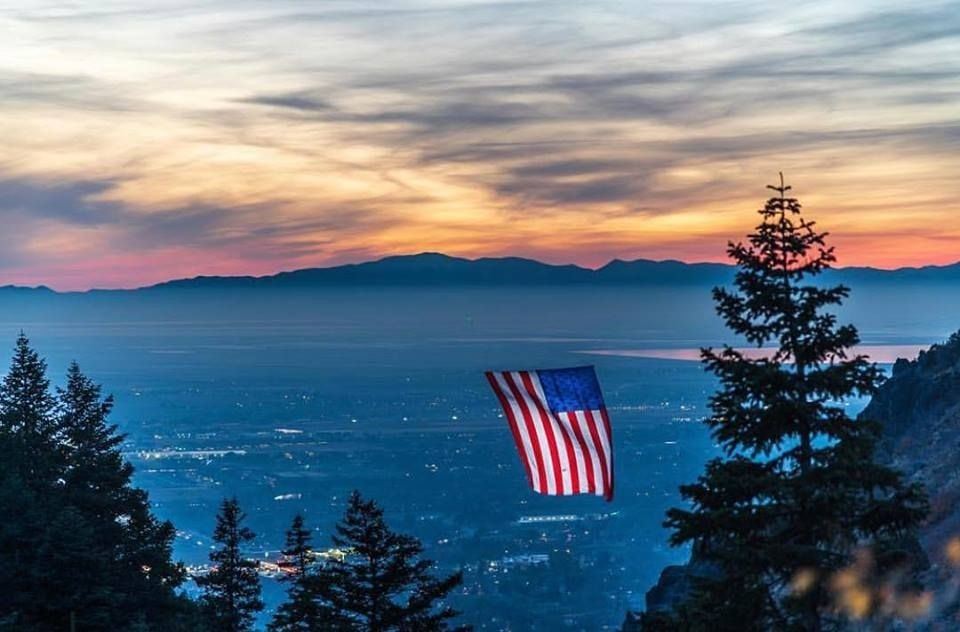 A framed print of the American Flag recently named “The Major “honors Major Brent Taylor, UT Army National Guard. Major Taylor was killed while on deployment to Afghanistan on Nov. 3, 2018. “The Major” is unfurled for one week each year above Coldwater Canyon east of North Ogden, UT in conjunction with the anniversary of Major Taylor’s death and Veteran’s Day.
