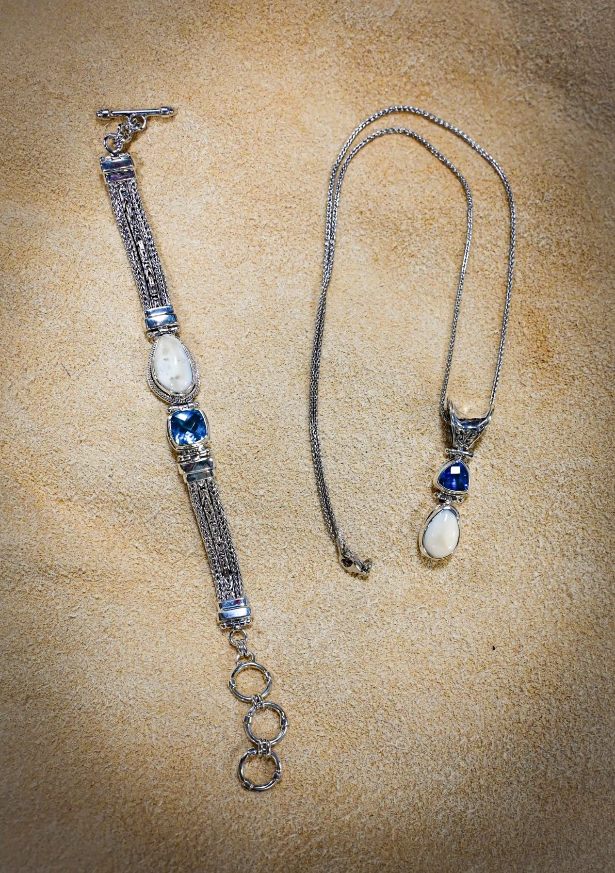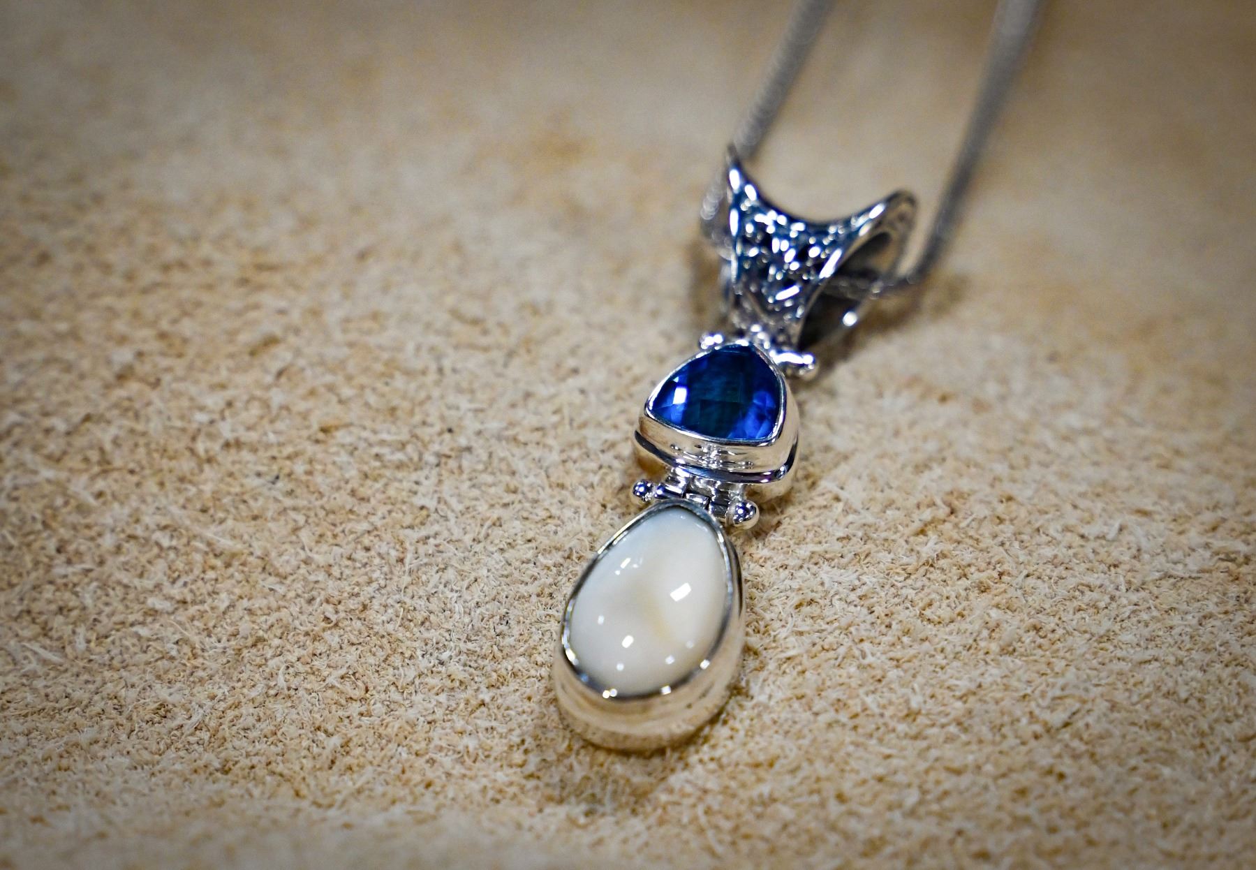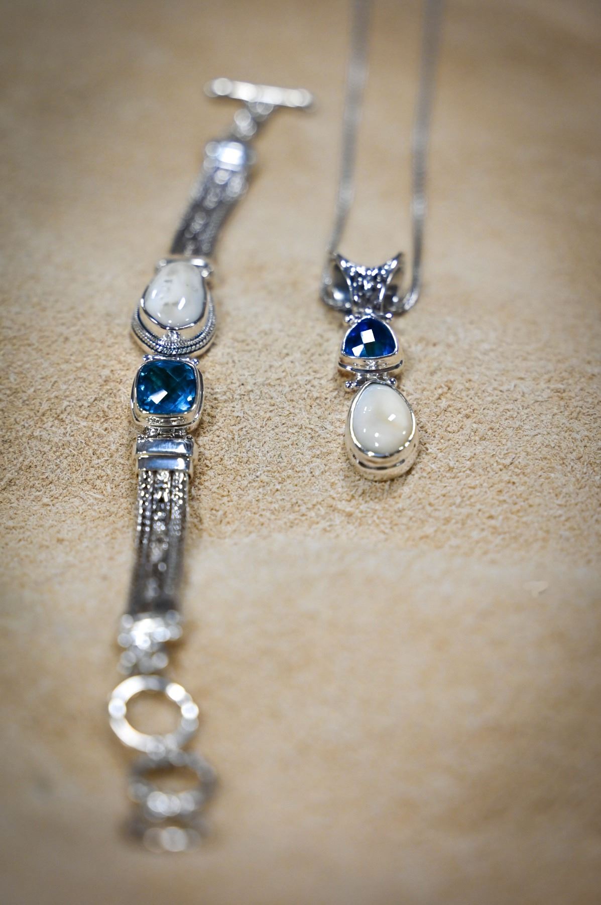 Stunning Blue Quartz and Elk Ivory Jewelry from Studio Pandora Fine Jewelry - Missoula, Montana.