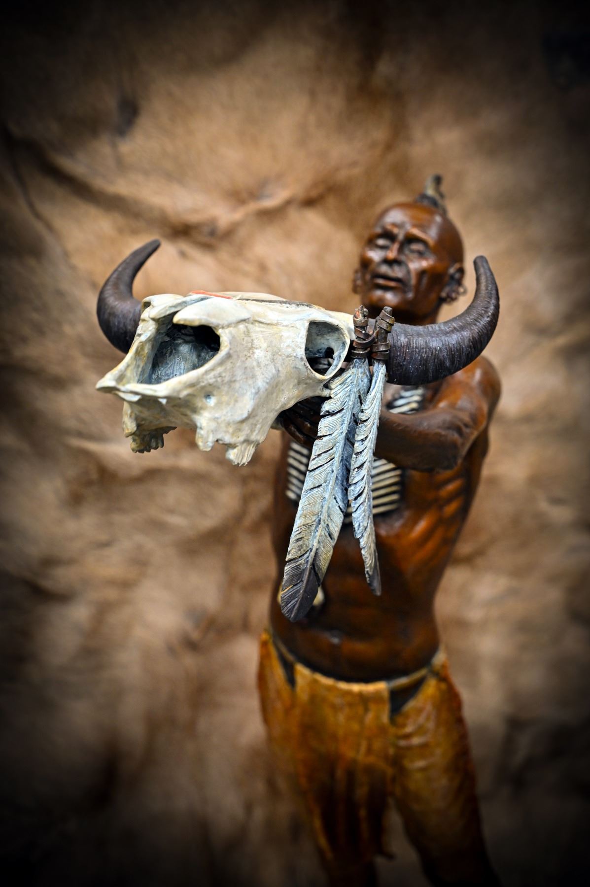 Buffalo headdresses and drums, heartbeat of the nation, and skulls were used to express thanks for the providential buffalo and to revel in the many blessings it brought – blessings that were nearly voided by the massive slaughter of herds by market runners in the 1800’s.”