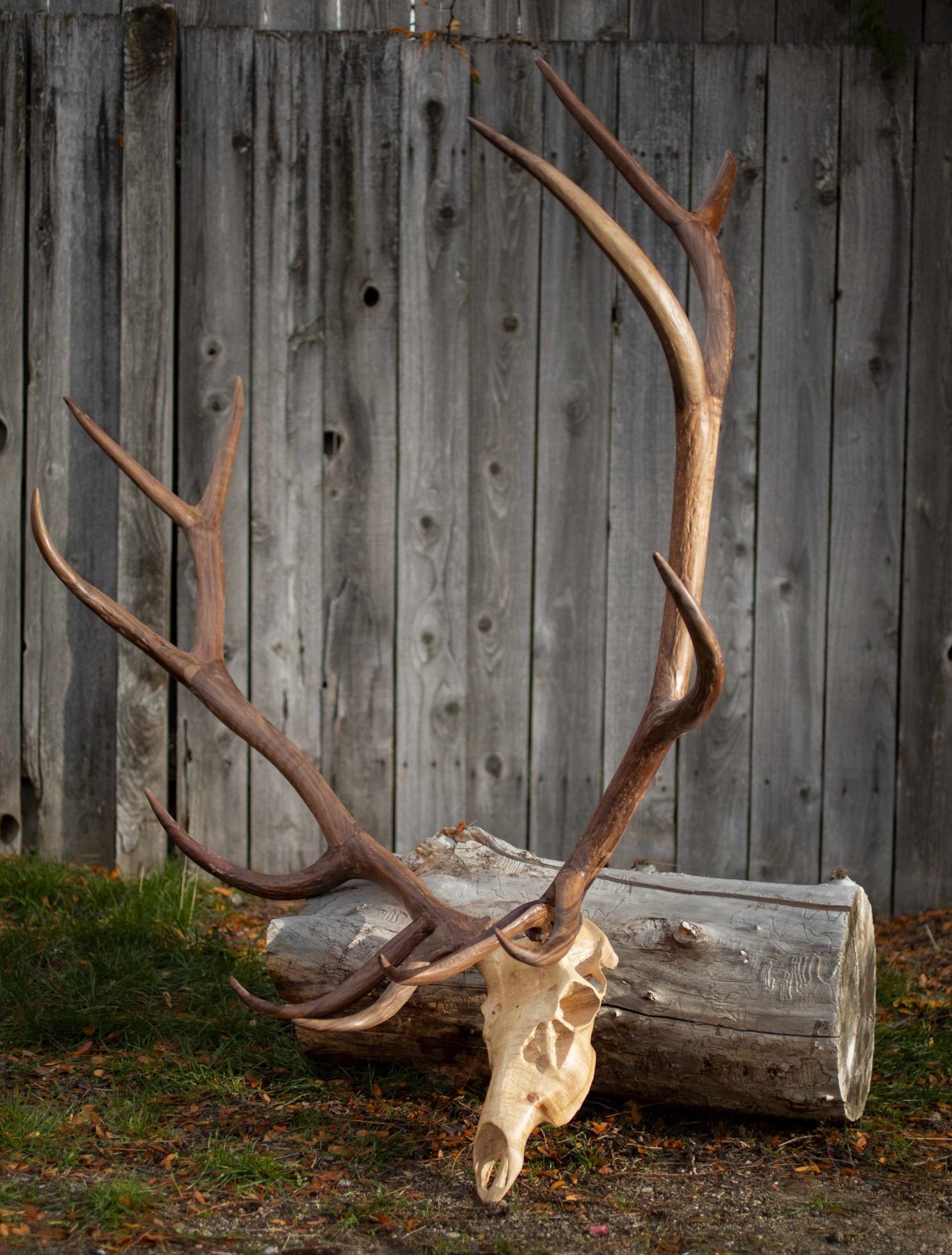 Handcrafted Bull Elk wood antler replica.