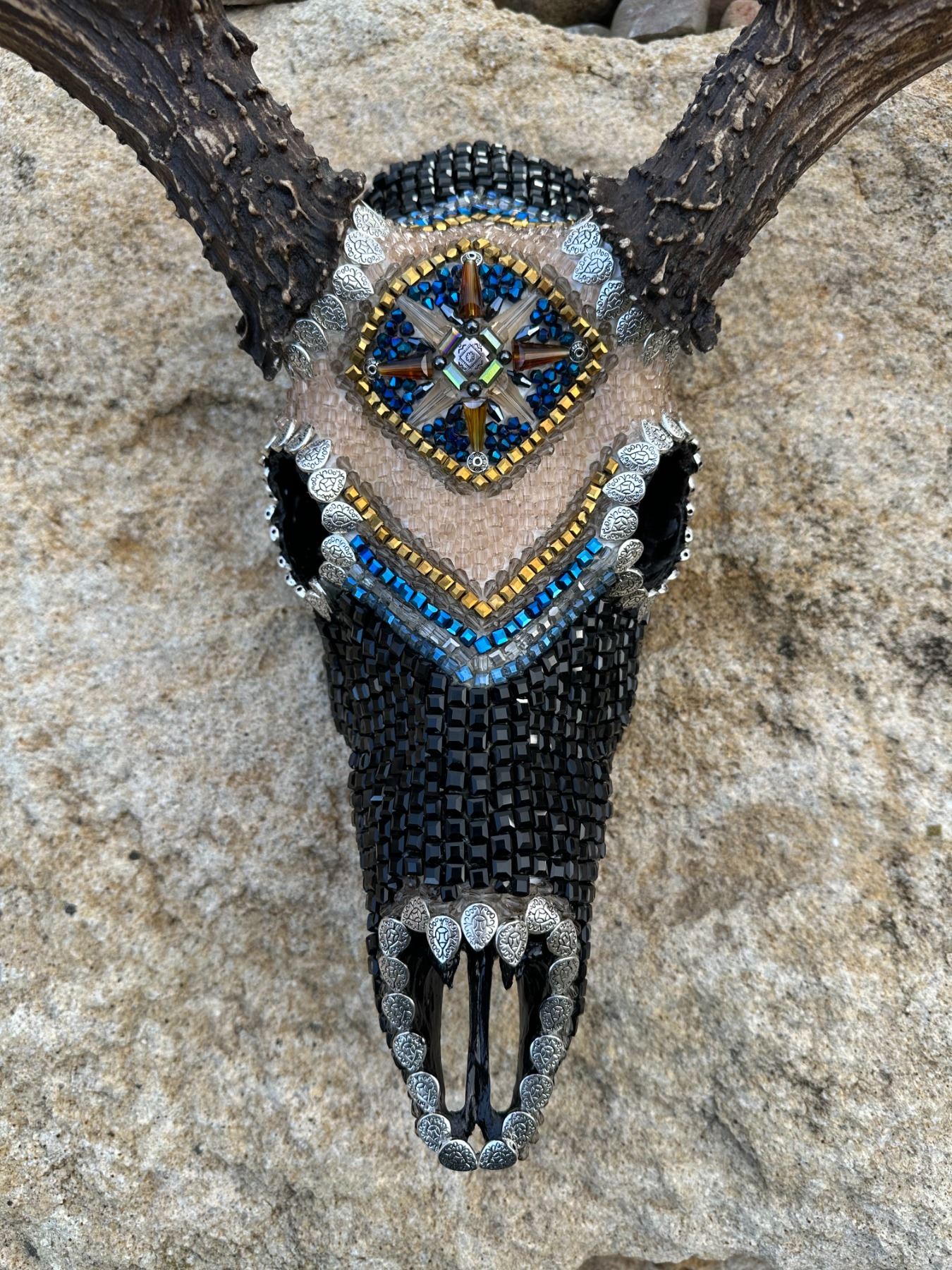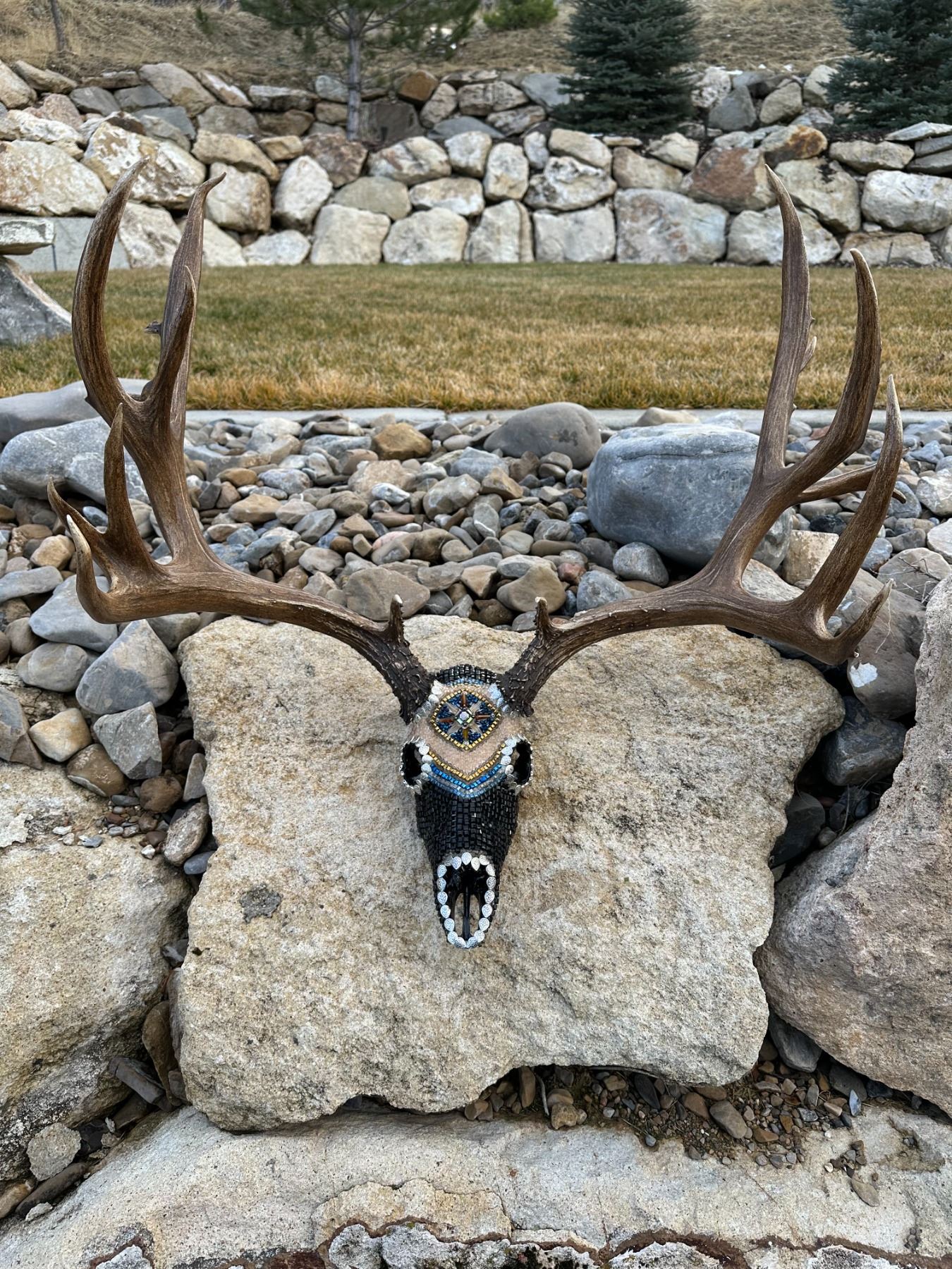 Lot 23 Hand Beaded Mule Deer Skull by Jana Waller Bair