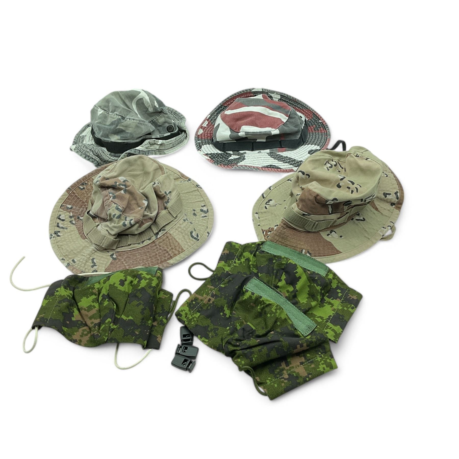 Assorted Camo Hot Weather Hats X 4 Qty and CADPAT Face Masks X 3 Qty