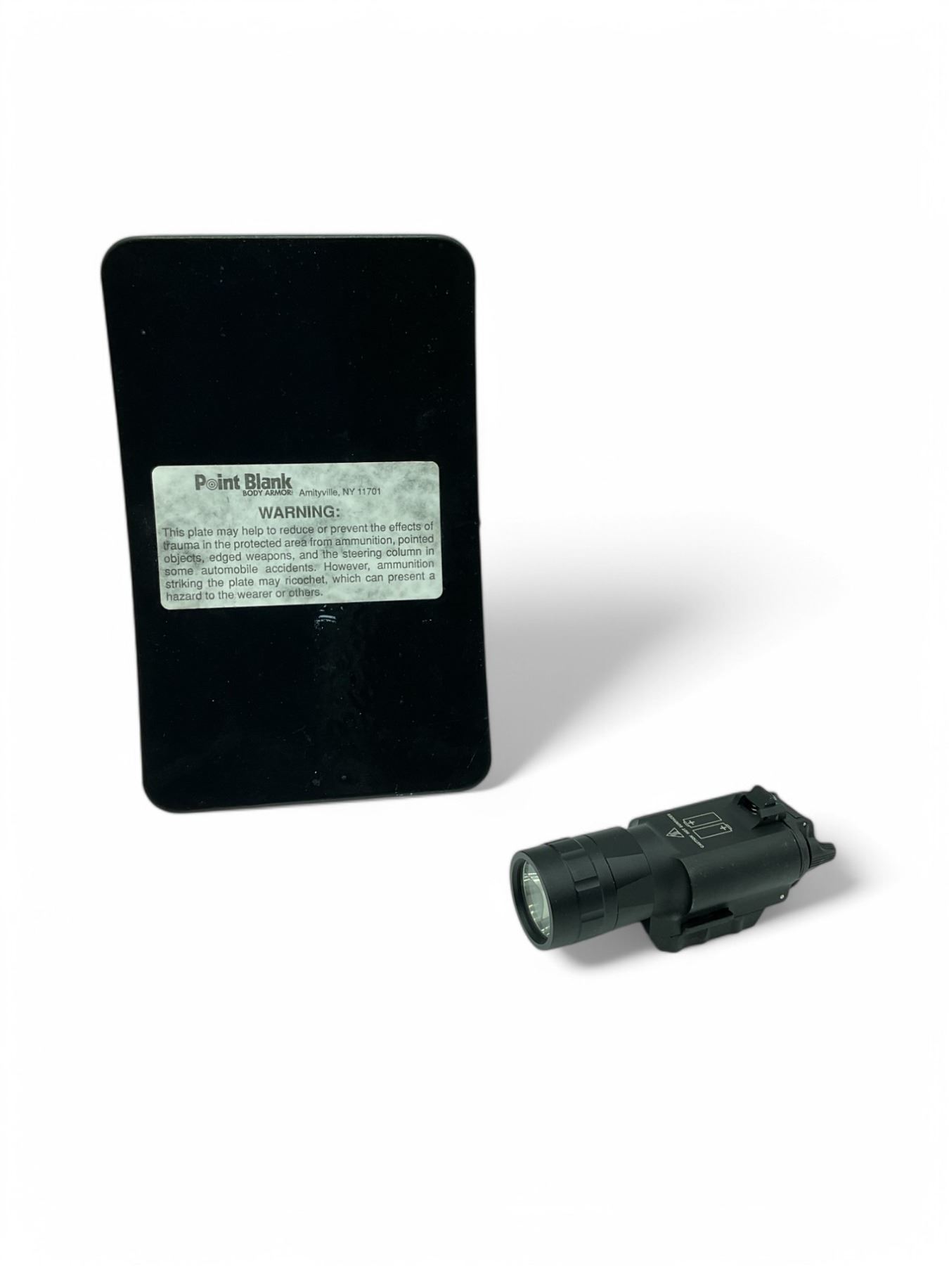 Lot 924 Point Blank Soft Armour Trauma Plate, 8" x 5" and Firearm Flashlight