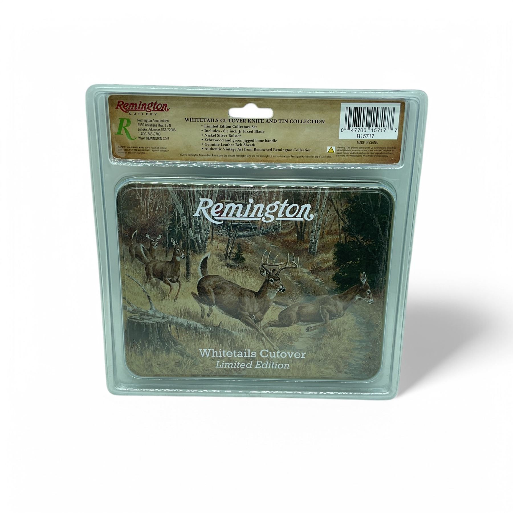 Lot 1528 Remington Cutlery 'Whitetails Cutover' Knife and Tin Collection, 6.5" Jr Fixed Blade Knife