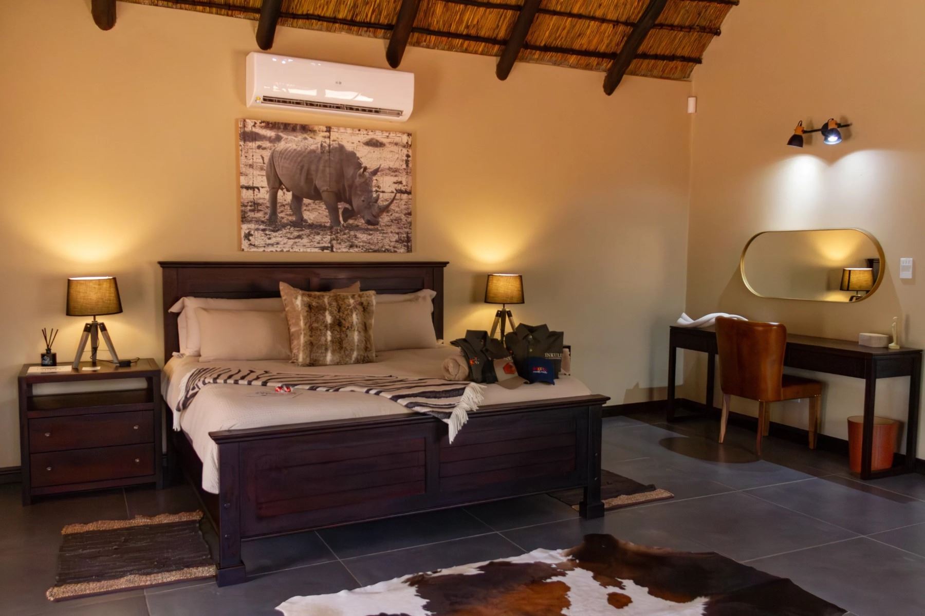World-Class Luxury Accommodations: Stay in air-conditioned private suites, thoughtfully designed for your comfort. Each suite offers luxurious amenities, blending opulence with the tranquility of the African bush.