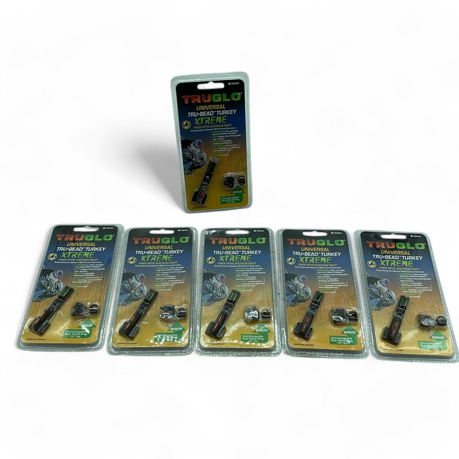Lot 6469 TruGlo Universal Tru-Bead Turkey Xtreme Fiber Optic Shotgun Sight with Bonus Rear Ghost Ring X 6 Qty