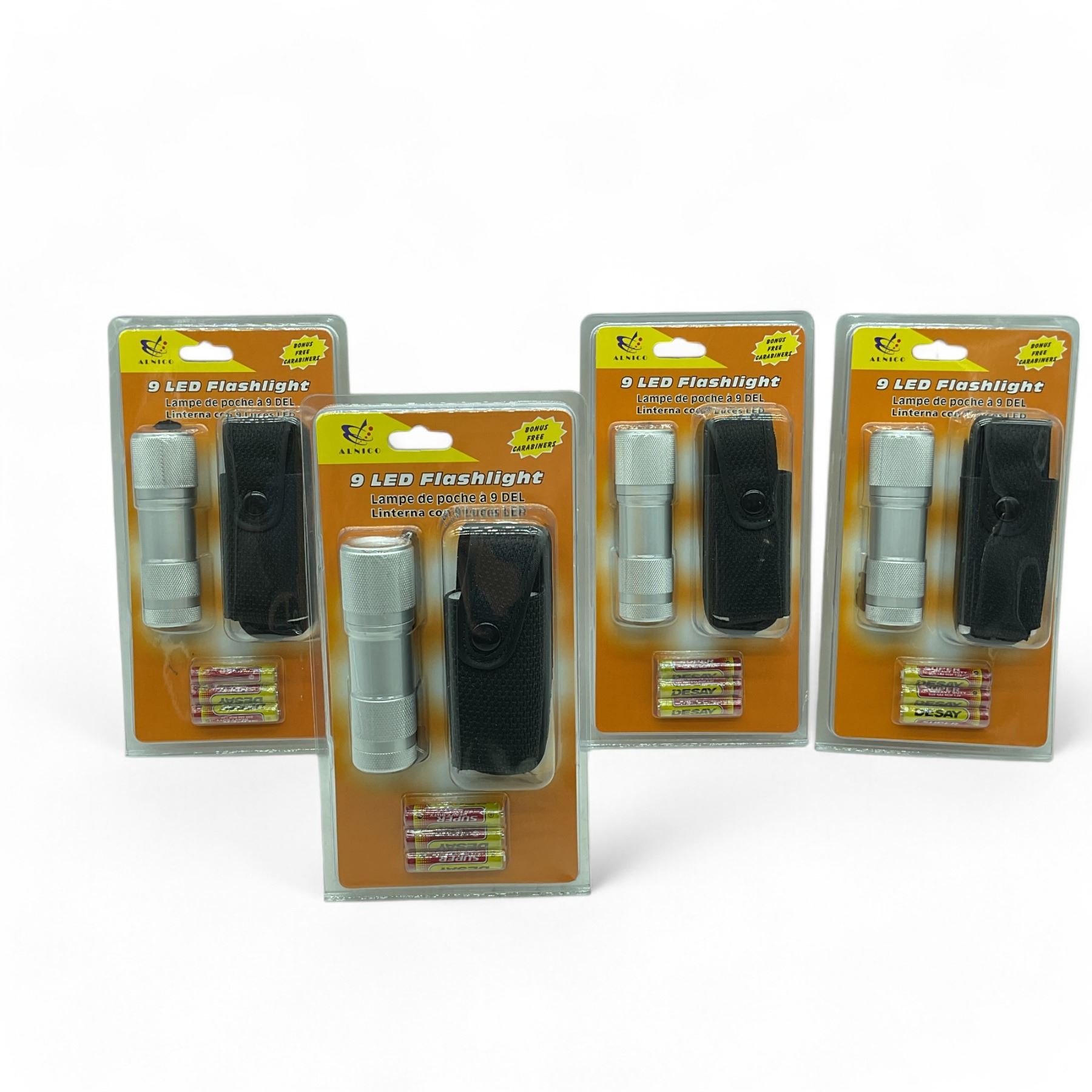 Alnico 9 LED Flashlight with Case X 4 Qty